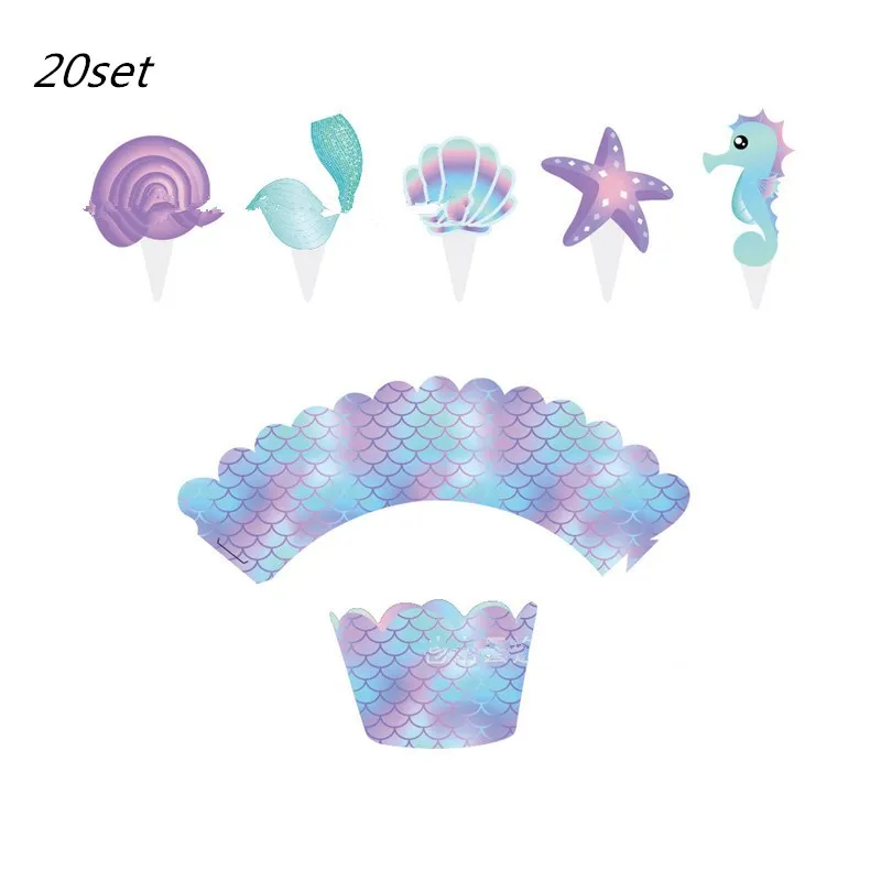 1 комплект, подставка для торта с русалочкой, держатели для кексов, Детские декоративные обертки для кекса на день рождения Русалочки для детского душа, принадлежности для свадебной вечеринки
