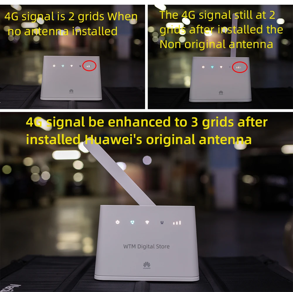 Чтобы проверить, может ли внешняя антенна усилить сигнал 4G, я обнаружил подземную парковку с плохим сигналом, и результаты были следующими: 1. Когда антенна не установлена, сигнал 4G составляет 2 сетки; 2. Сигнал 4G остается неизменным на 2 решетках после установки неоригинальной антенны; 3. Сигнал 4G будет увеличен до 3 решеток после установки оригинальной антенны Huawei.