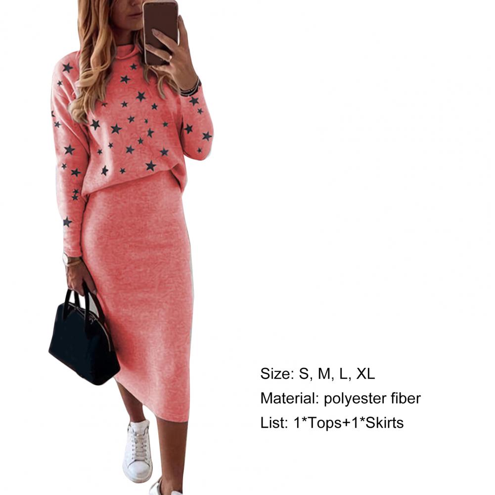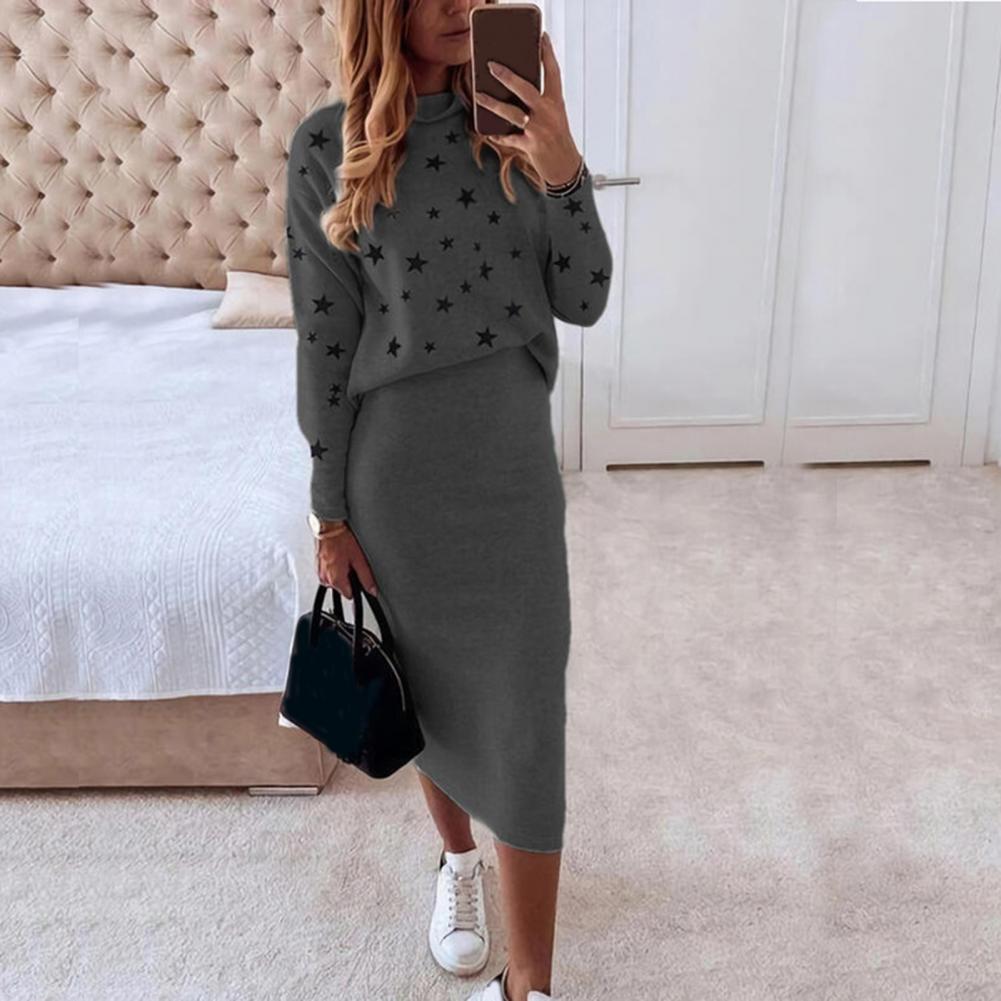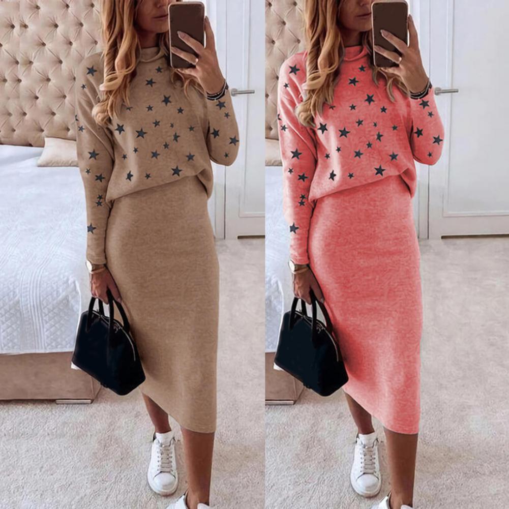 1 комплект, блузка, юбка, пятиконечная звезда, принт, высокая талия, Осень-зима, облегающая юбка-карандаш, костюм для повседневной носки
