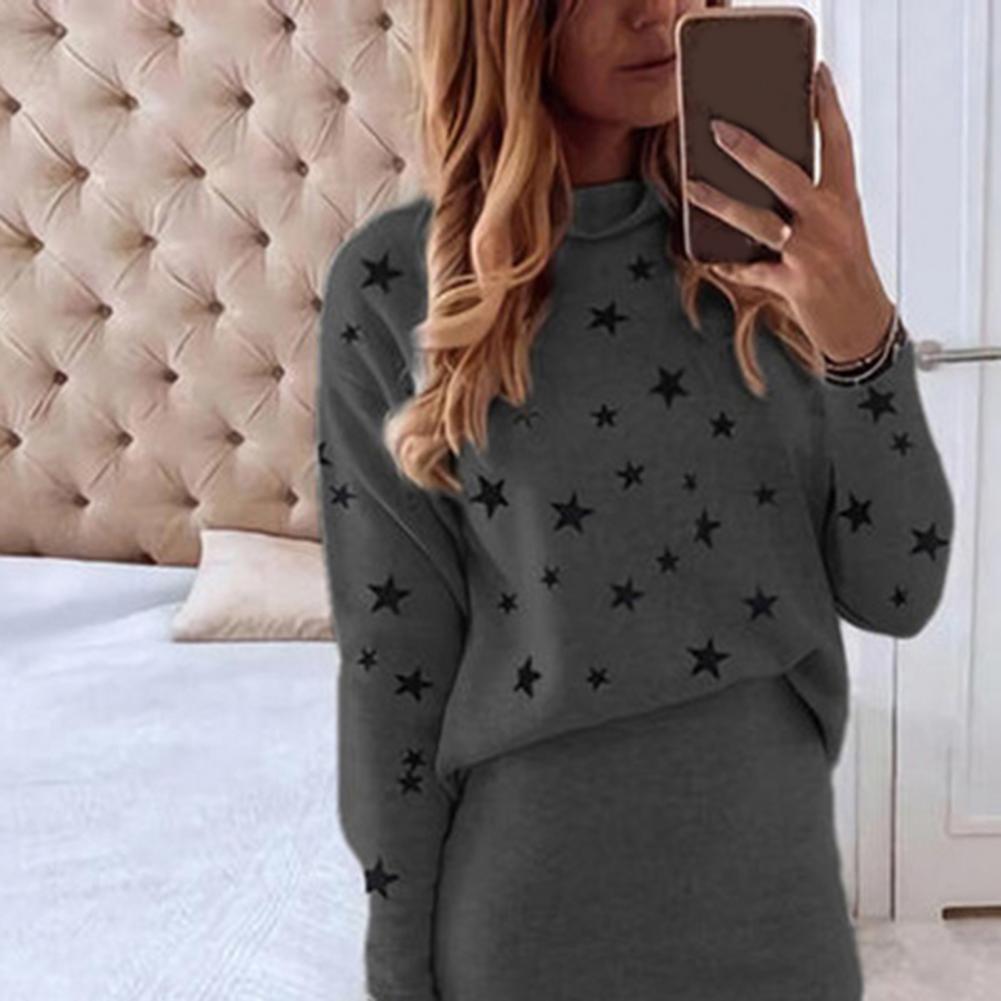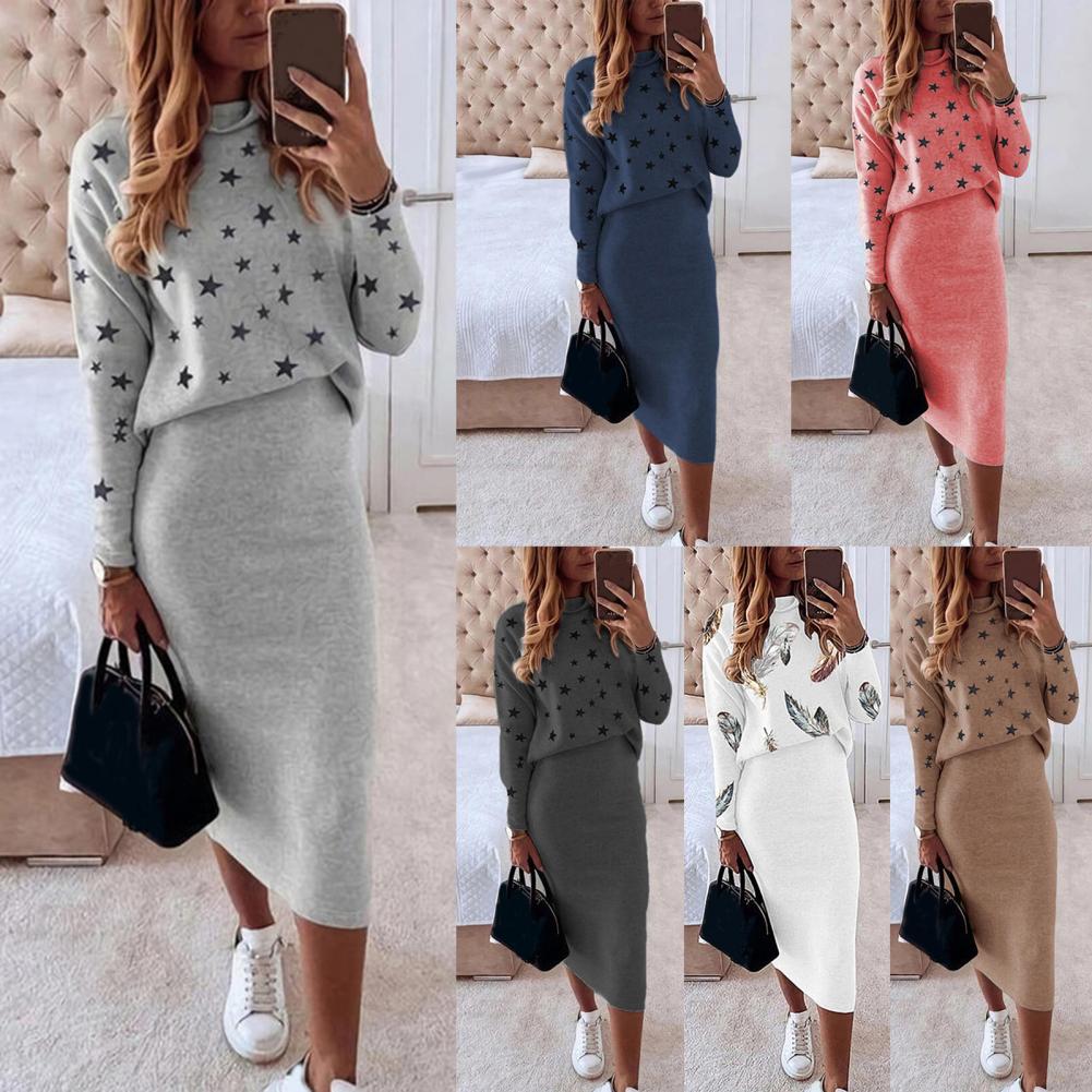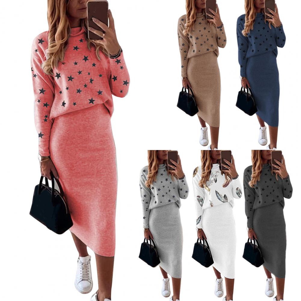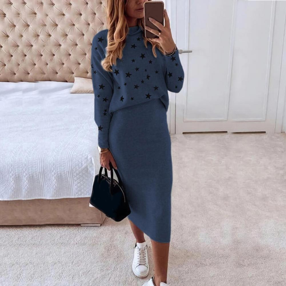 1 комплект, блузка, юбка, пятиконечная звезда, принт, высокая талия, Осень-зима, облегающая юбка-карандаш, костюм для повседневной носки