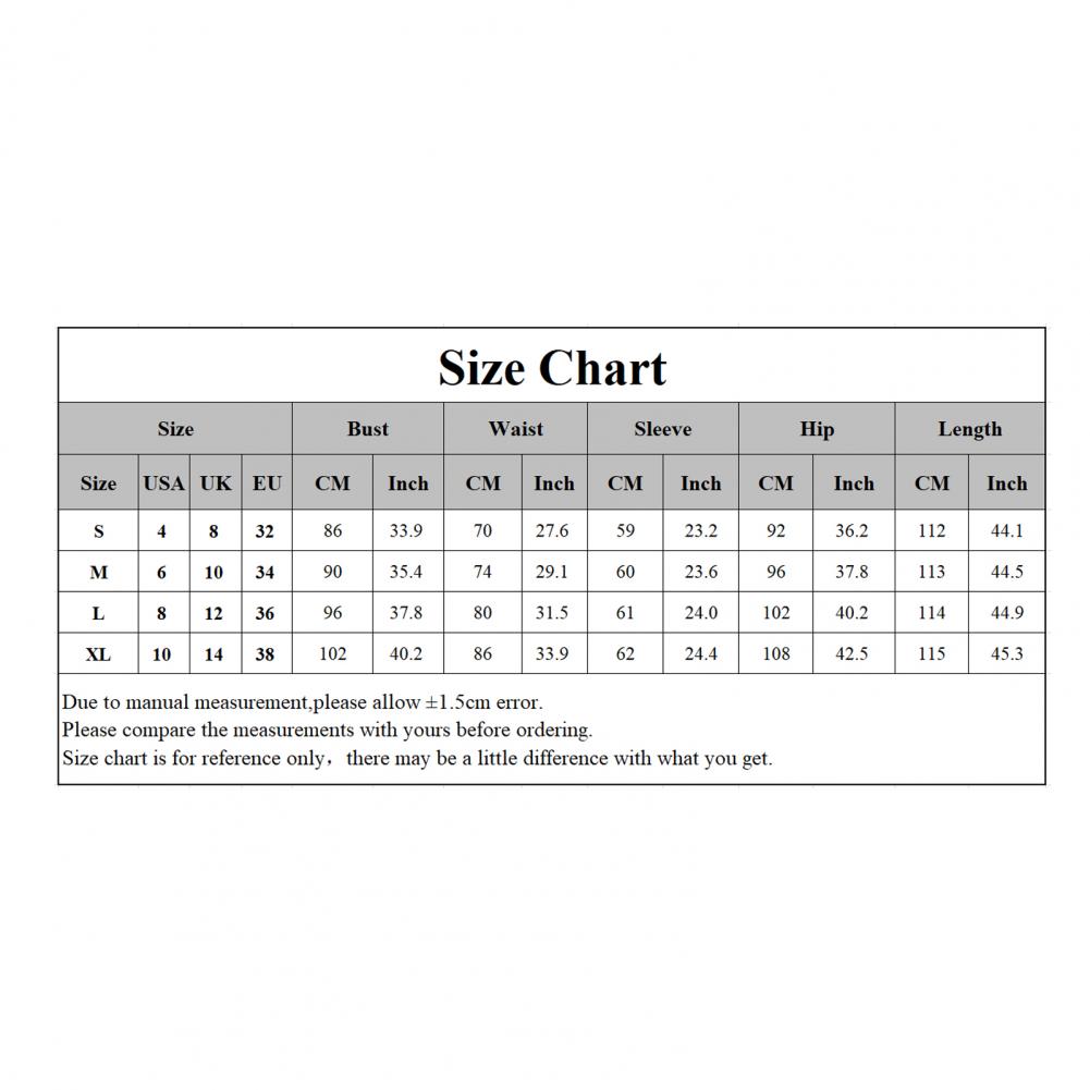 Размер: S, обхват груди: 86 см/33,9 дюйма, обхват талии: 70 см/27,6 дюйма, длина рукава: 59 см/23,2 дюйма, обхват бедер: 92 см/36,2 дюйма, длина: 112 см/44,1 "(прибл.)