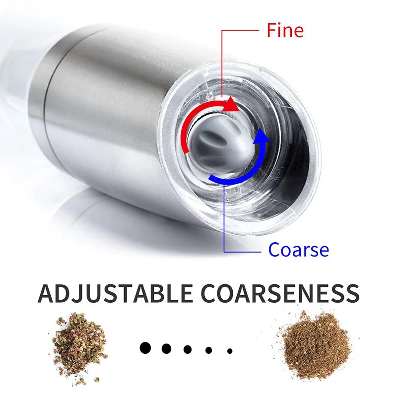 Управление одной рукой: Нет необходимости в ручном шлифовании, нет кнопок для нажатия. Просто Наклоните, чтобы автоматически активировать мясорубку для специй. Вернитесь к вертикали, чтобы остановить.