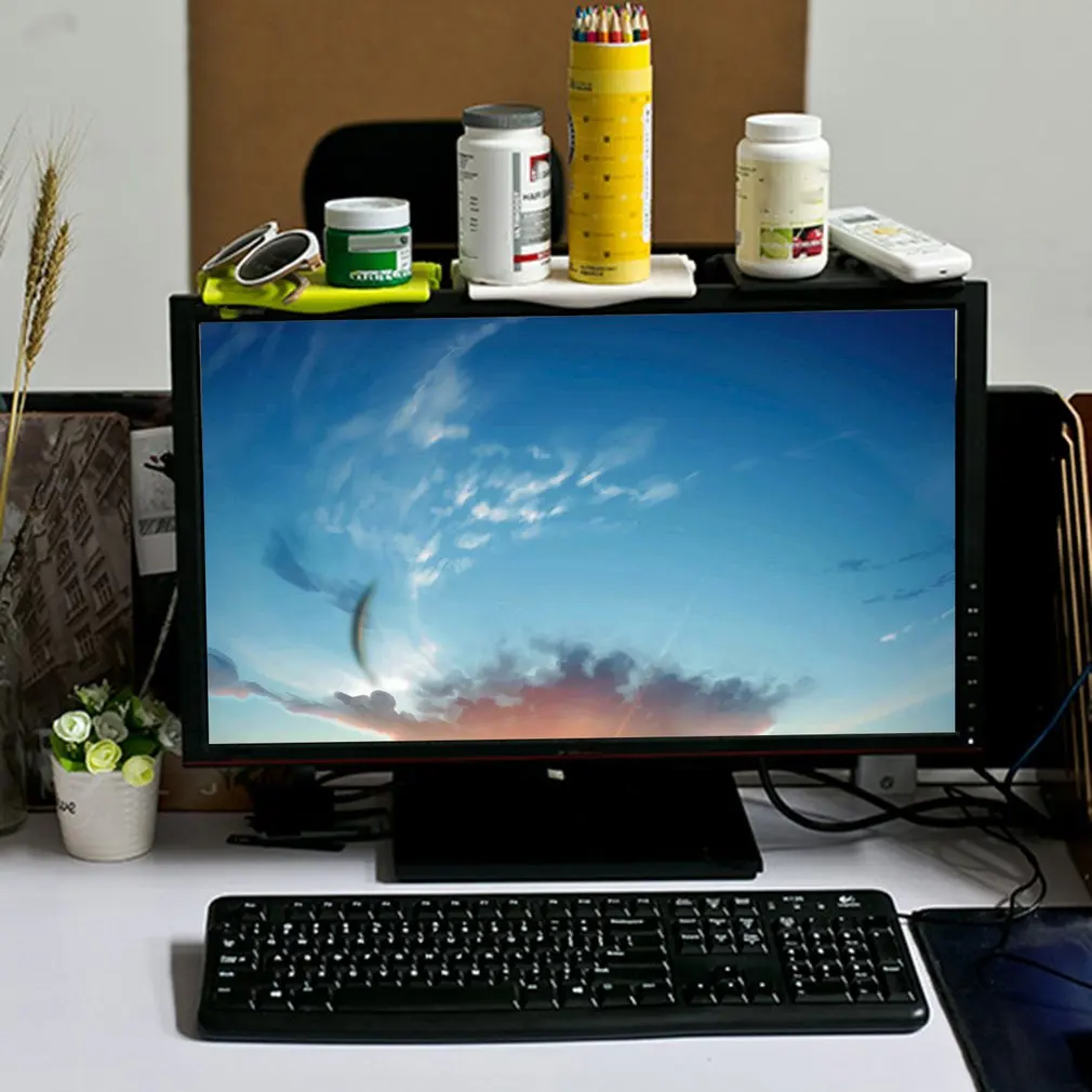 Экран Верхняя полка дисплей полка компьютерный стояк настольная подставка тв стойка для хранения стол многофункциональный стеллаж для хранения ABS