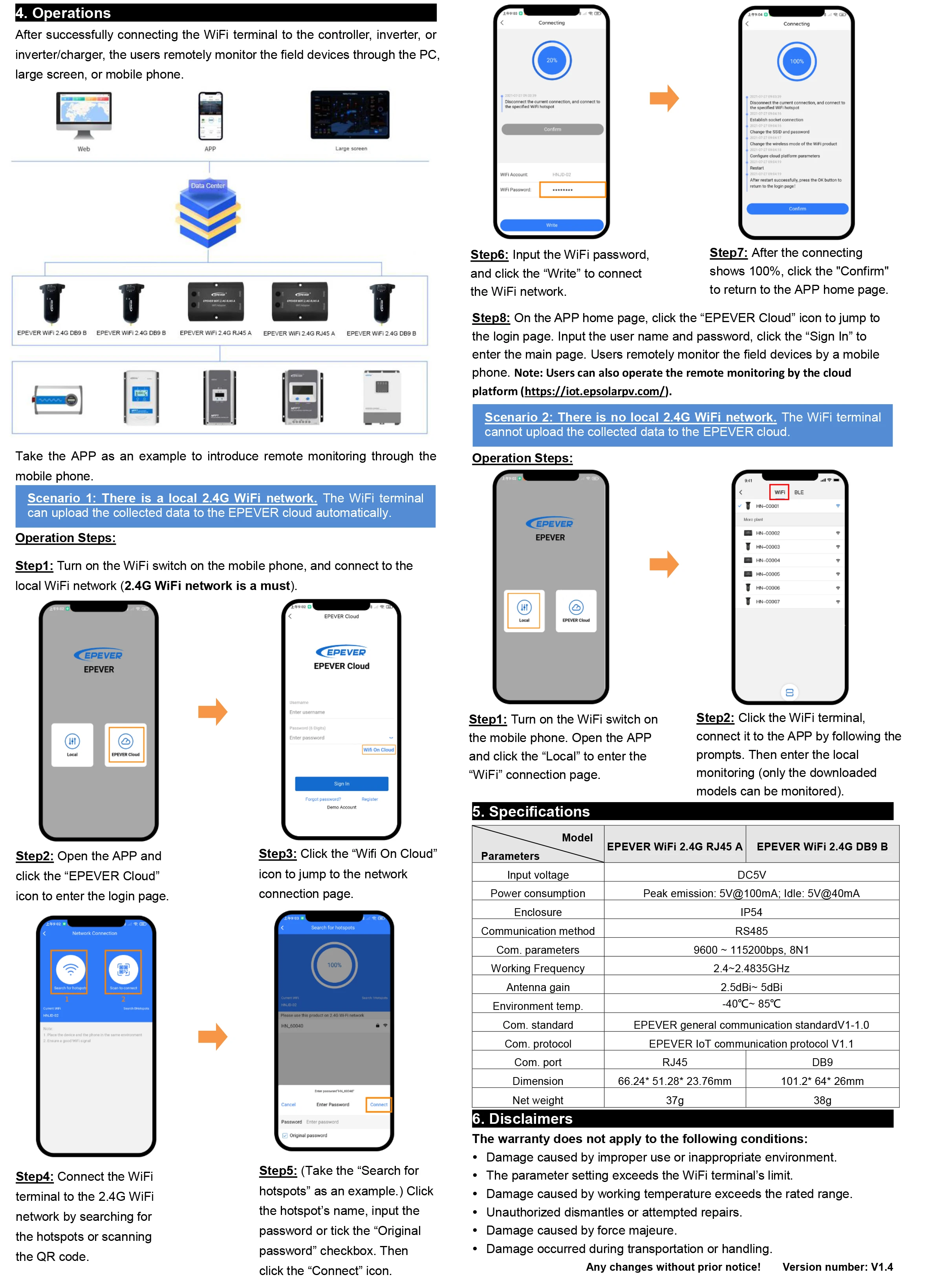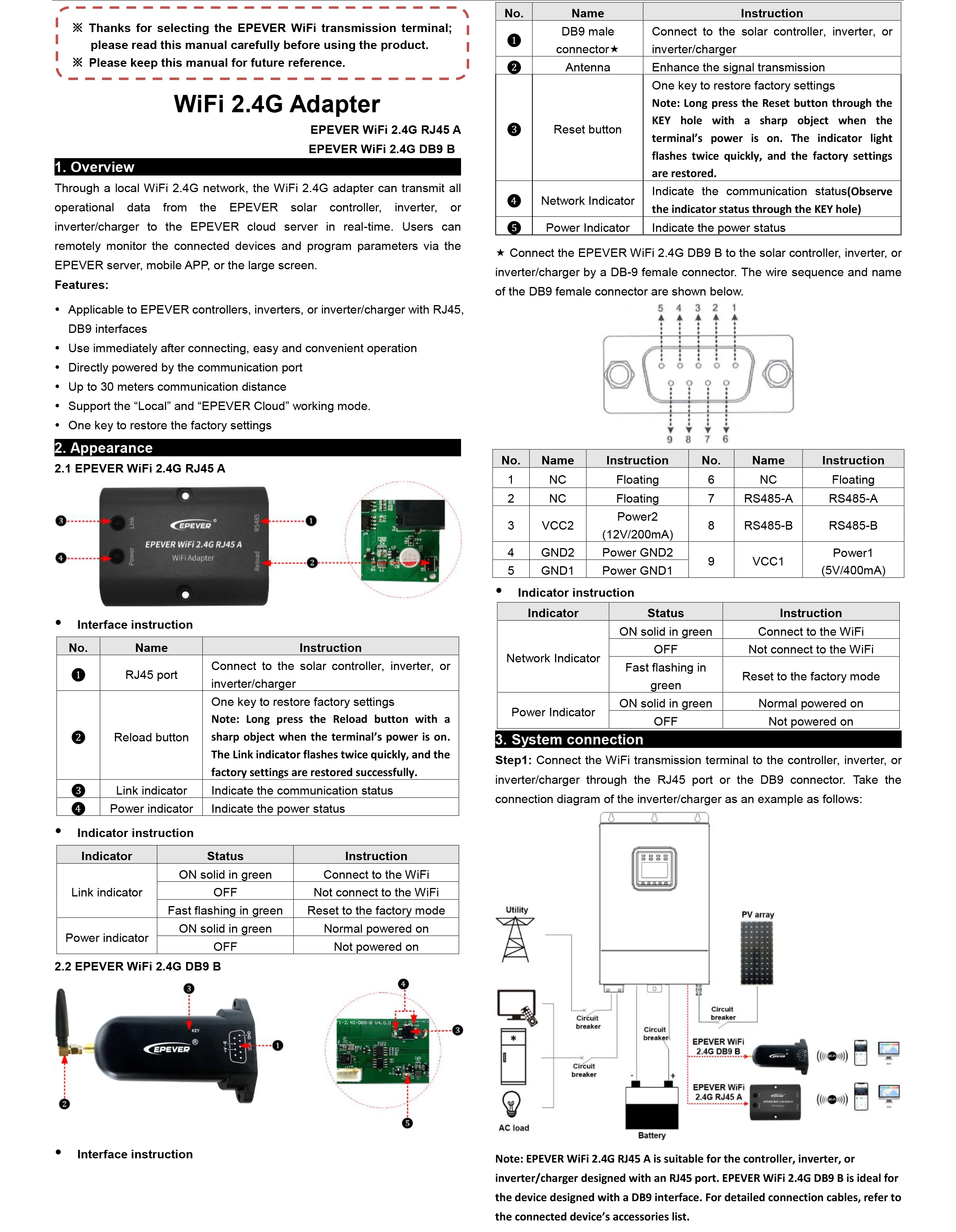 EPEVER-WiFi-2.4G-RJ45-A адаптер модуля WiFi для контроллера epever MPPT