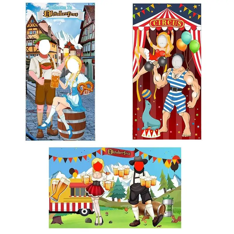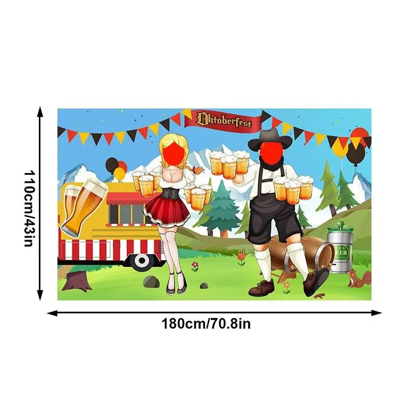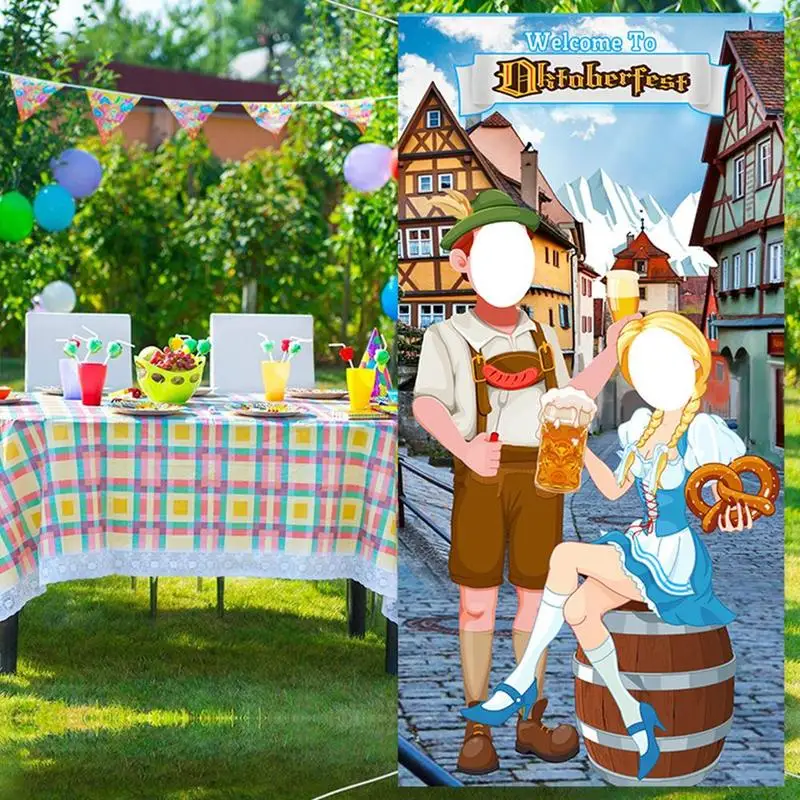 1. Вечеринка Октоберфест: Этот Октоберфест фото плакат разработан с изображением баварских костюмов и пейзажных фонов. Сделайте ваши фестивальные мероприятия более запоминающимися благодаря потрясающим идеям фотостудии Октоберфест. В качестве интересного дополнения к поставкам Вечеринка Октоберфест, эта вечеринка Октоберфест украшение обеспечивает интересный и яркий фон для фотографий партии, которая мгновенно усиливает праздничную атмосферу.