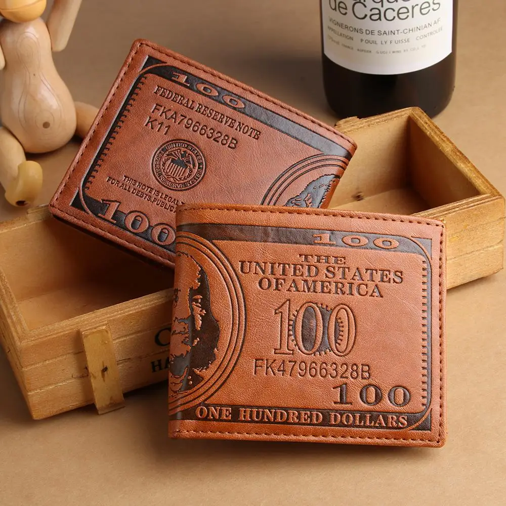 1 шт. 2020 Мужской винтажный кошелек из искусственной кожи с узором в виде доллара, дизайнерские мужские кошельки, повседневный держатель для кредитных карт, кошелек для мужчин, сумка для денег