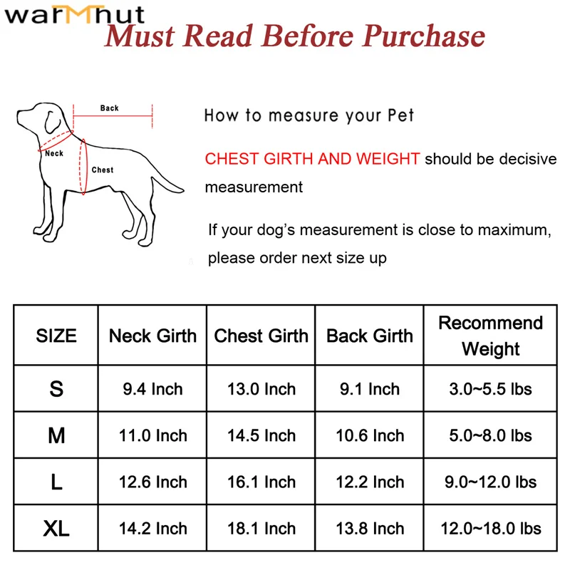Size M: Chest Girth: 14.5", Back Length: 10.6", Neck Girt: 11.0";recommend for 5.0~8.0 lbs. must measure your pet's neck/chest girth,back length, body weight and check the size chart before order, do not make a decision just by the size name, a bit loosely will be more comfortale