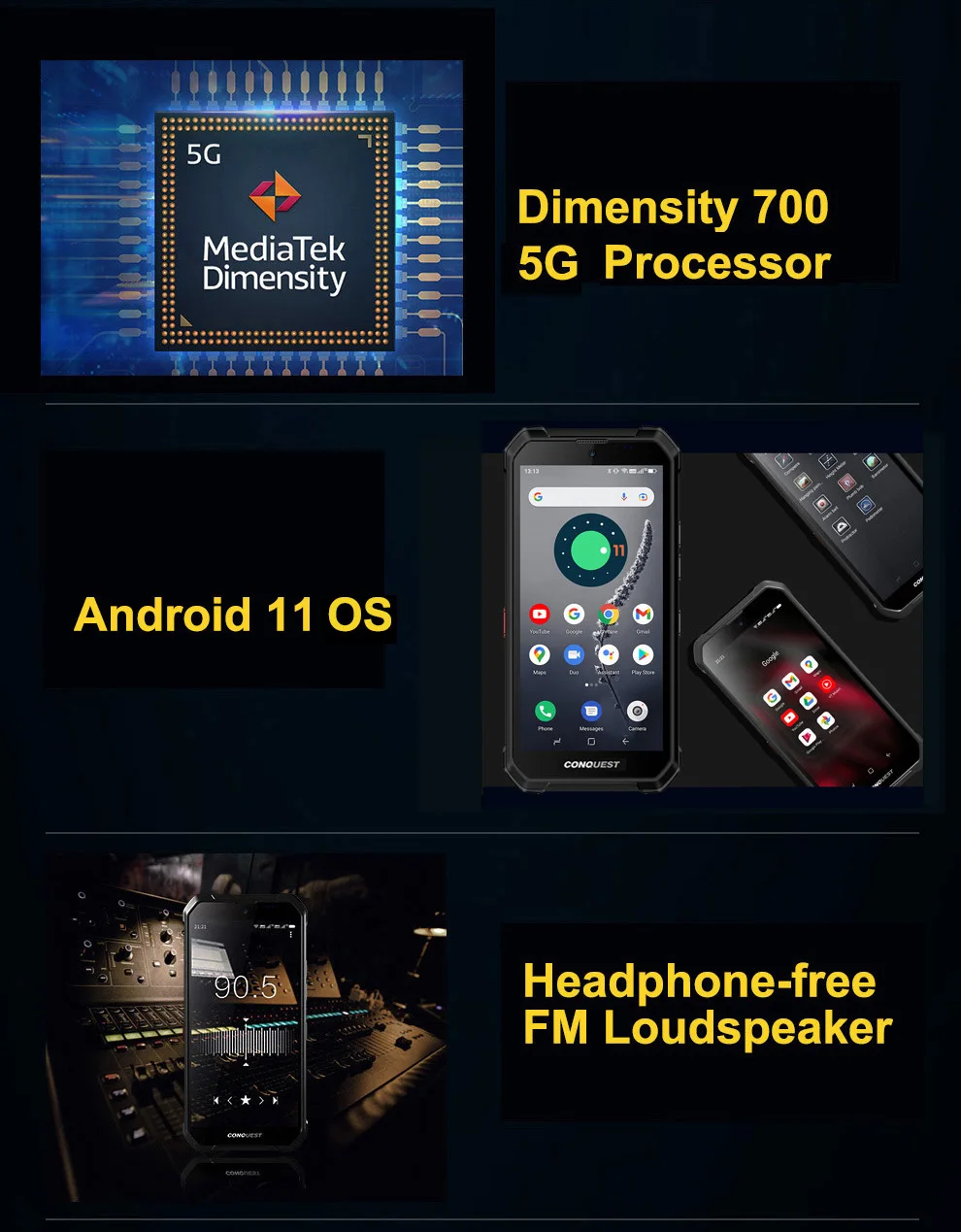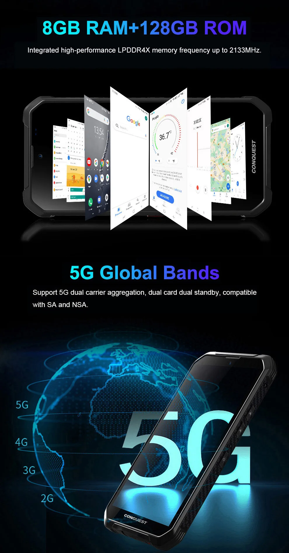 CONQUEST S21 глобальная версия двойной 5G прочный смартфон 8 Гб 128 ГБ IP68 Водонепроницаемая задняя камера 48 Мп Android 11 NFC мобильный телефон