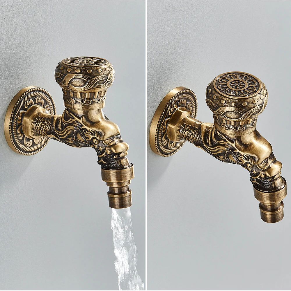 Настенный кран античный Дракон резной латунный маленький кран декоративный наружный садовый смеситель стиральная машина краны Швабра туалет кран