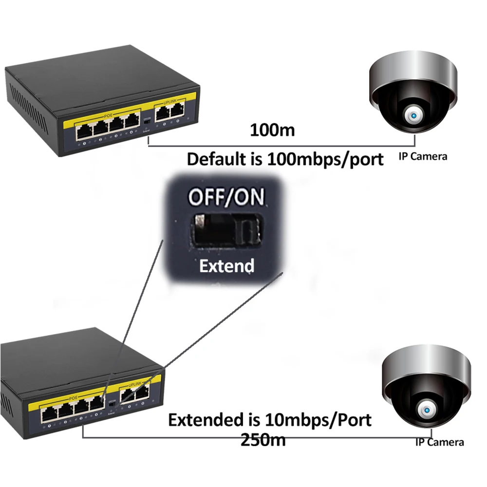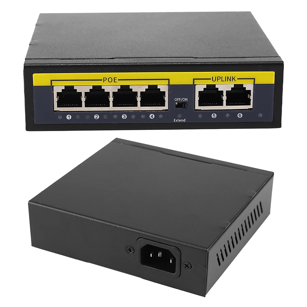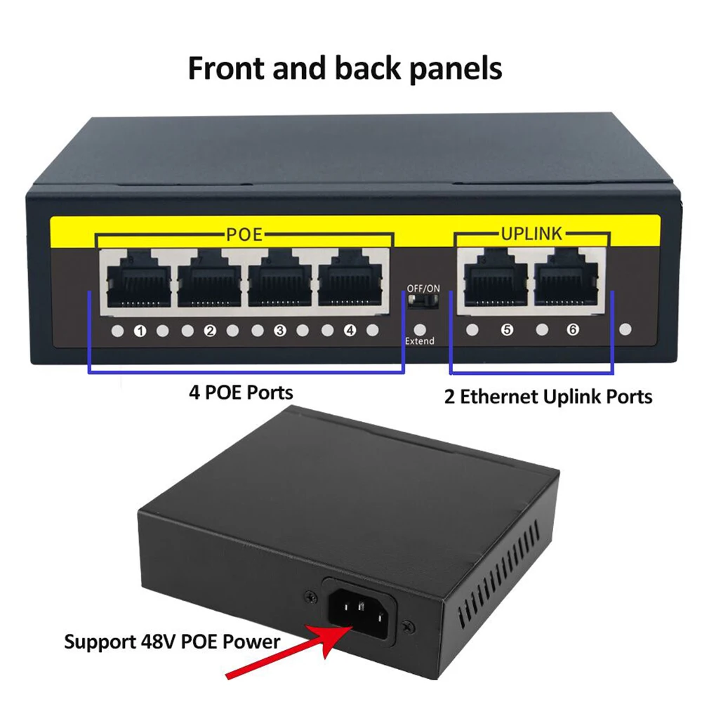 1.4-Port PoE Switch:4 x 10/100 Mbps PoE ports for Security IP Camera Connection +2 x 100/1000Mbps fast Ethernet Uplink ports for Router/NVR connection, Plug & Play