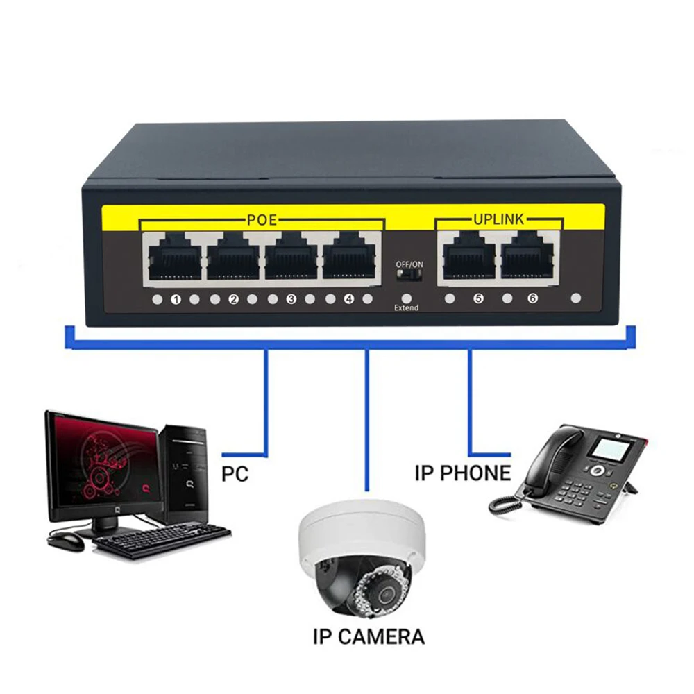 5.PoE switch is ideal for powering PoE devices such as IP cameras, WLAN access point, IP phones, office access control systems, and other PD devices and offers a line of high quality products