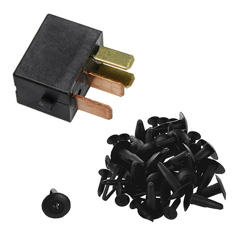 26 шт. автозапчасти: 1 реле компрессора и 25 пластиковых заклепок