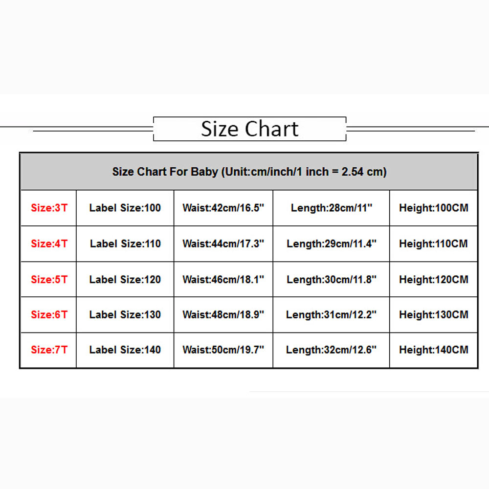 Таблица размеров для малышей (единица измерения: см/дюйм/1 Дюйм = 2,54 см) Размеры: до 3 лет Размер этикетки: 100 Талия: 42 см/16,5" Длина: 28 см/11" Высота: 100См Размер: 4T Размер этикетки: 110 Талия: 44 см/17,3" Длина: 29 см/11,4" Высота: 110См Размер: 5T Размер этикетки: 120 Талия: 46 см/18,1" Длина: 30 см/11,8" Высота: 120См Размер: 6T Размер этикетки: 130 Талия: 48 см/18,9" Длина: 31 см/12,2" Высота: 130См Размер: 7T Размер этикетки: 140 Талия: 50 см/19,7" Длина: 32 см/12,6" Высота: 140См
