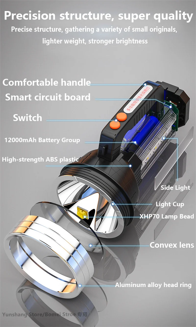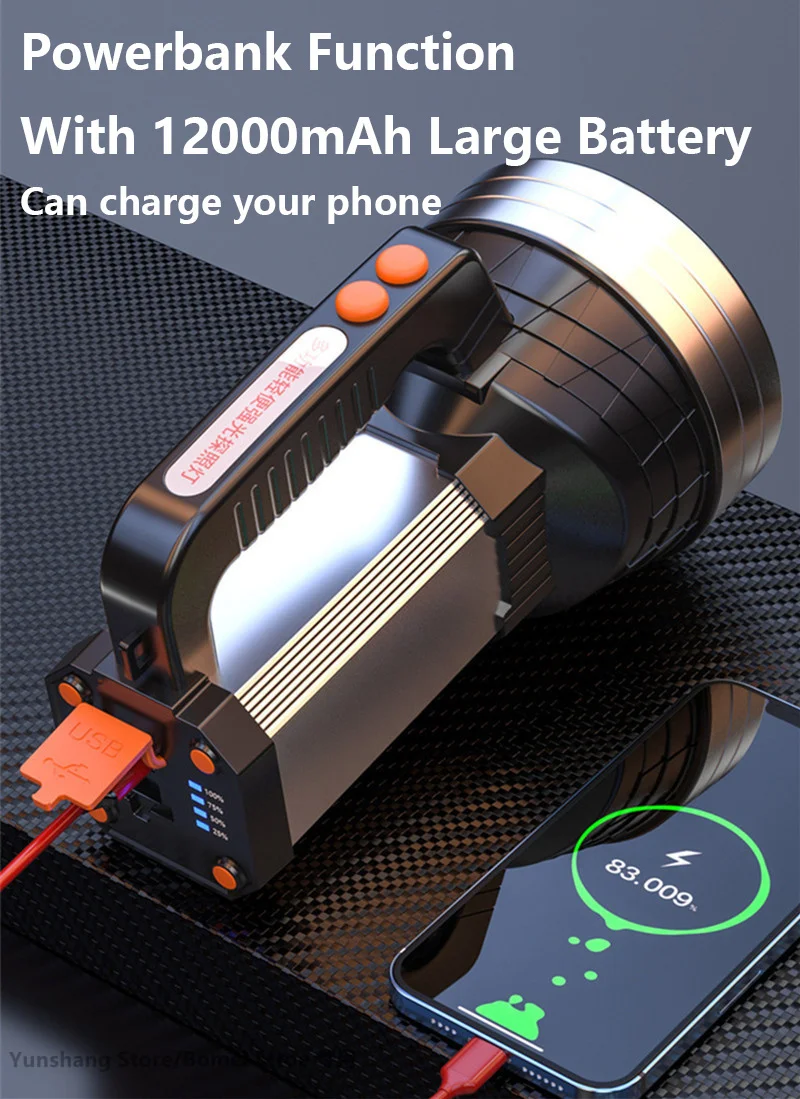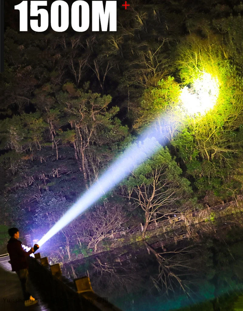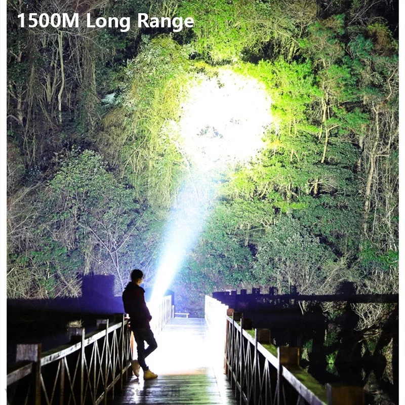 500000LM 100W Powerful LED Flashlight 1500M Long Range Portable Spotlights XHP70 Searchlight USB Recharge Camp Tactical Torch