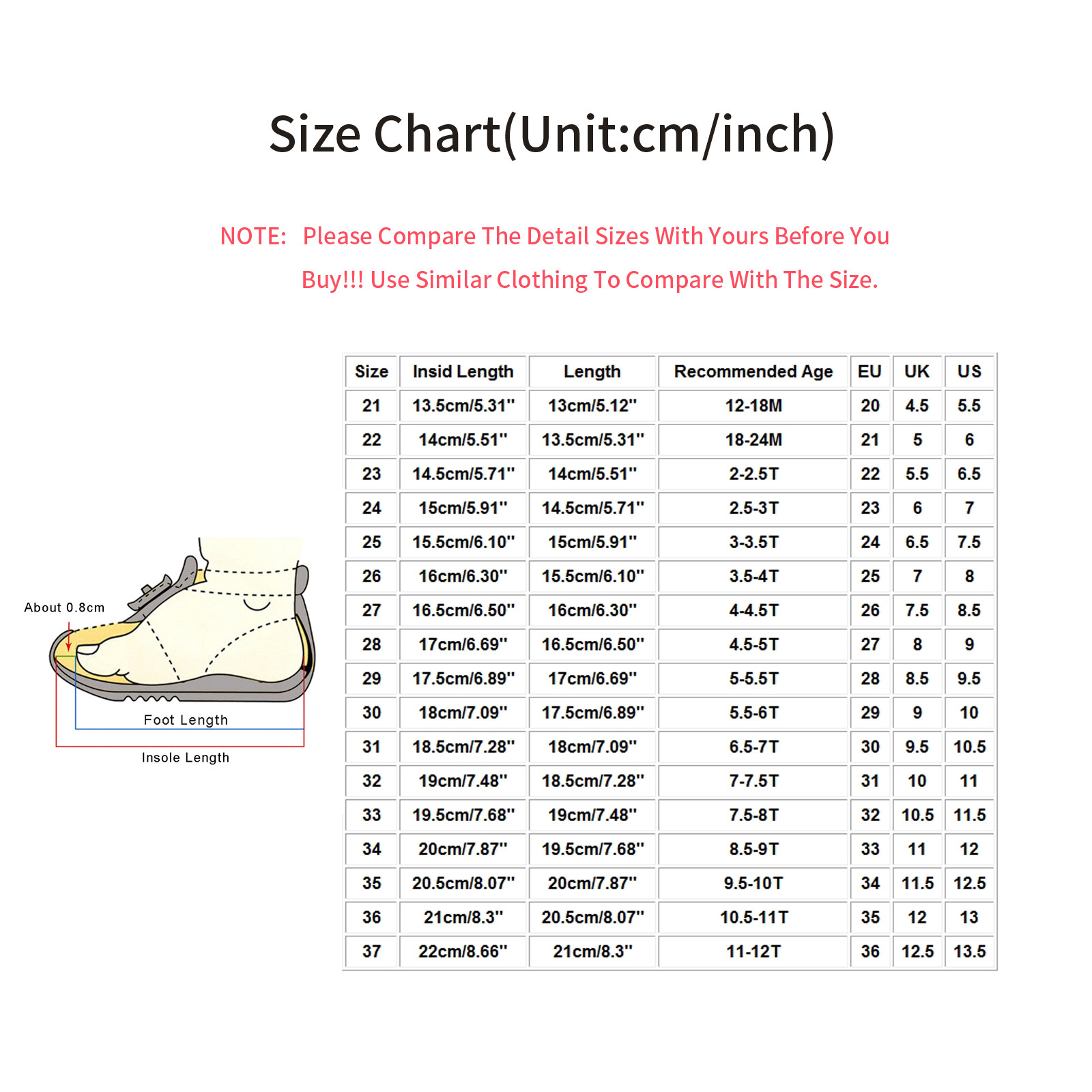 Мы предлагаем вам выбрать больший размер, если фактическая длина вашей стопы длиннее Чем выше длина стопы