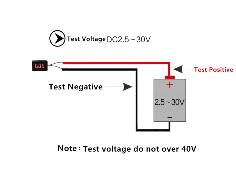 2. Диапазон измерения напряжения регулируется: DC4-30V, требуется внешний источник питания.