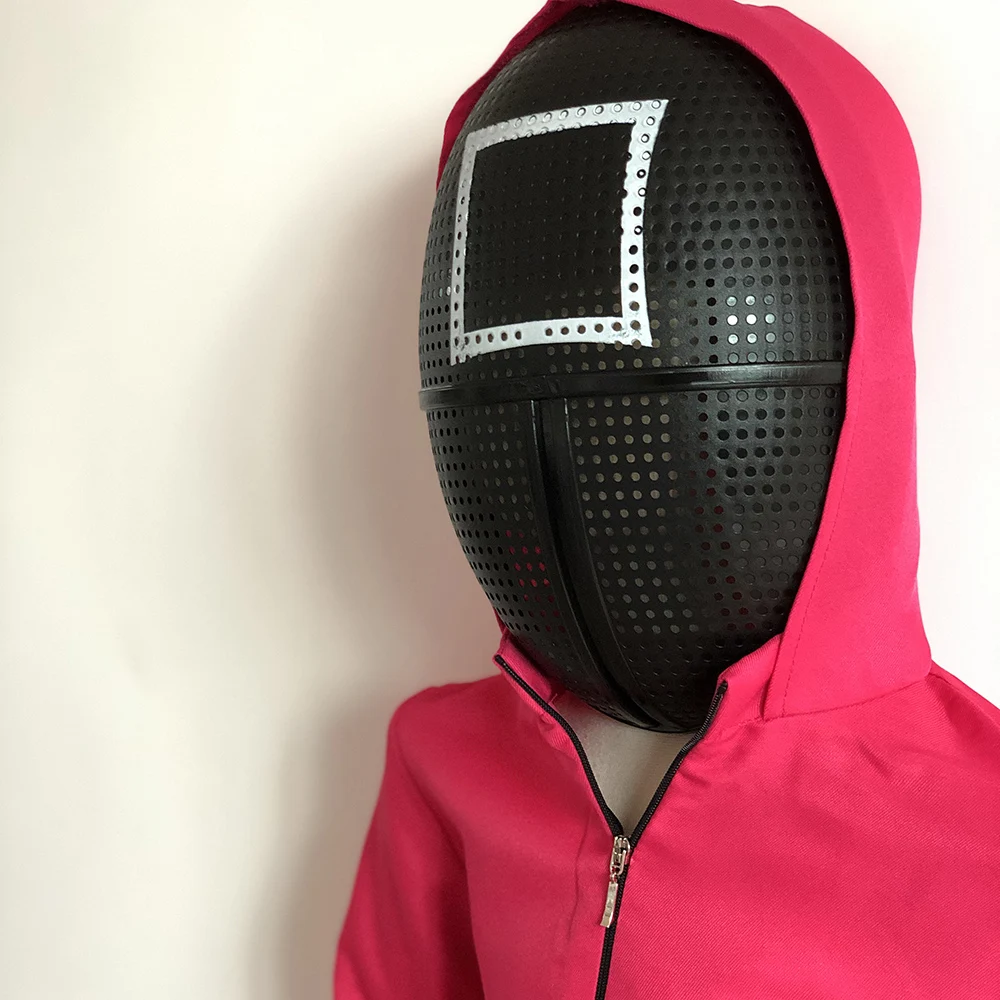Детский костюм для игры в кальмар, косплей, комбинезон с логотипом, квадратное лицо, треугольник, пластиковый пистолет для лица, маски вечеринка Хэллоуин, костюм