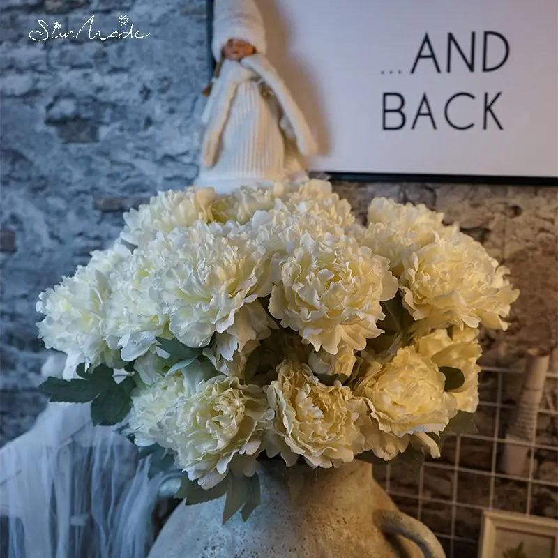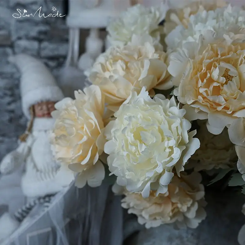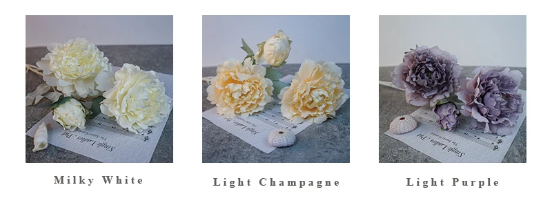 Название:3 головки однотонные, шелковые пионы с бело-зелеными листьями персональной серии "The Glory of Eros"