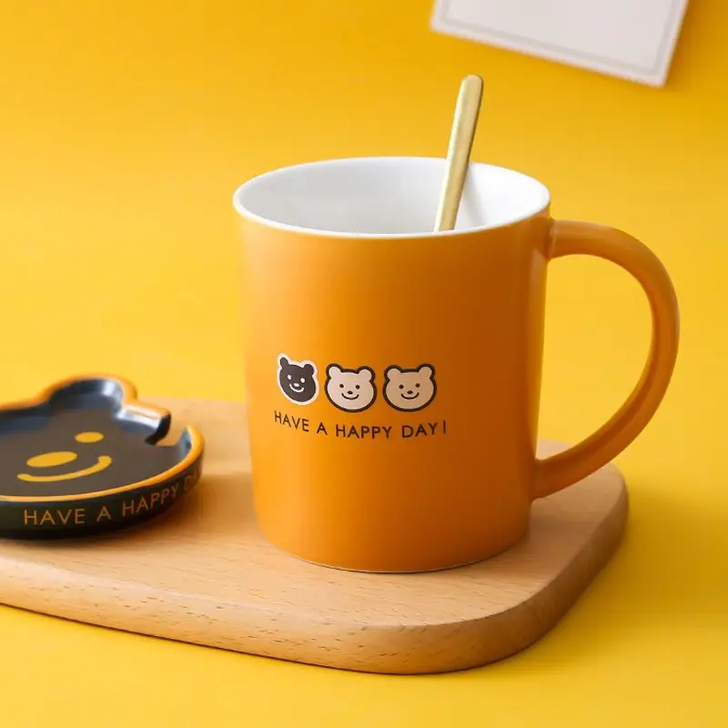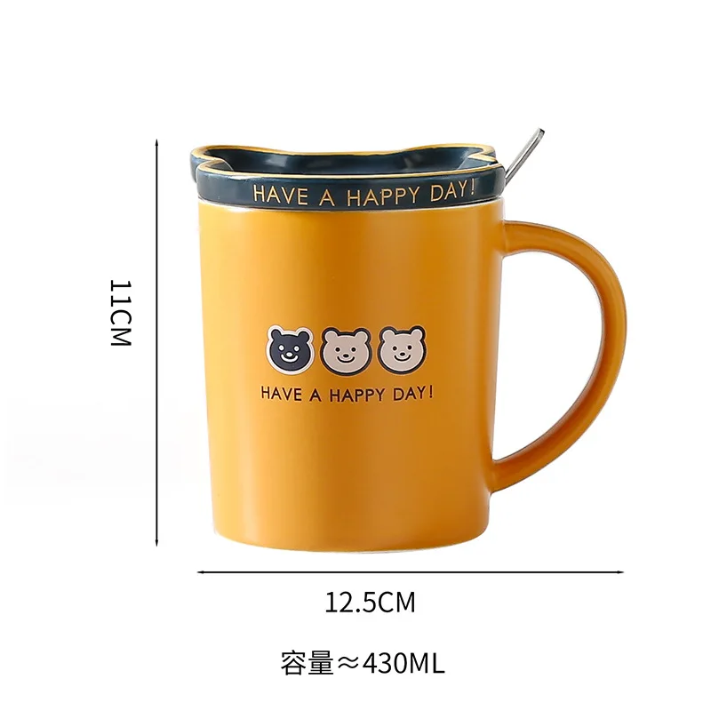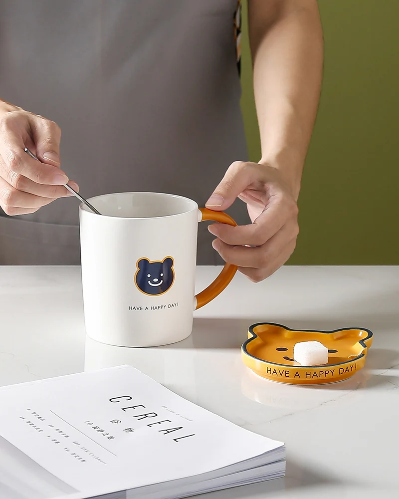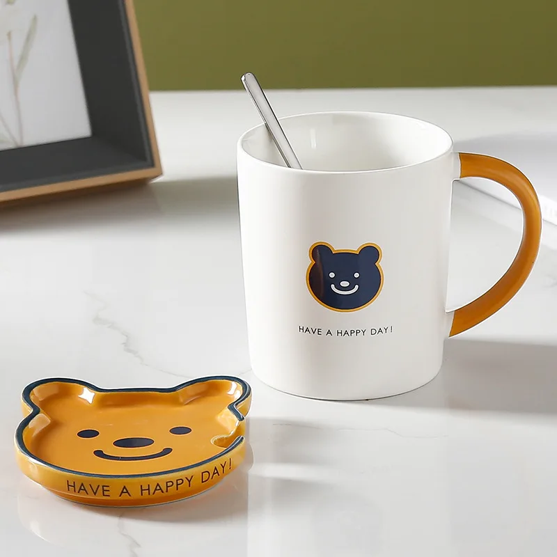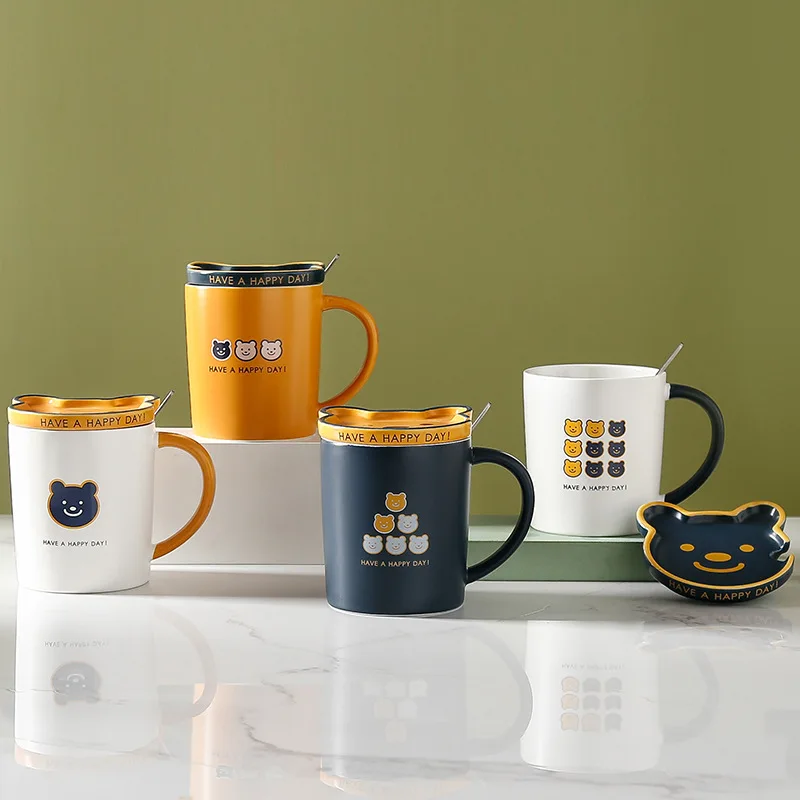 Ручная роспись, форма медведя из мультфильма, керамическая кофейная кружка с крышкой, ложка, пара, чашка для воды, чашка для офисного завтрака, подарок другу