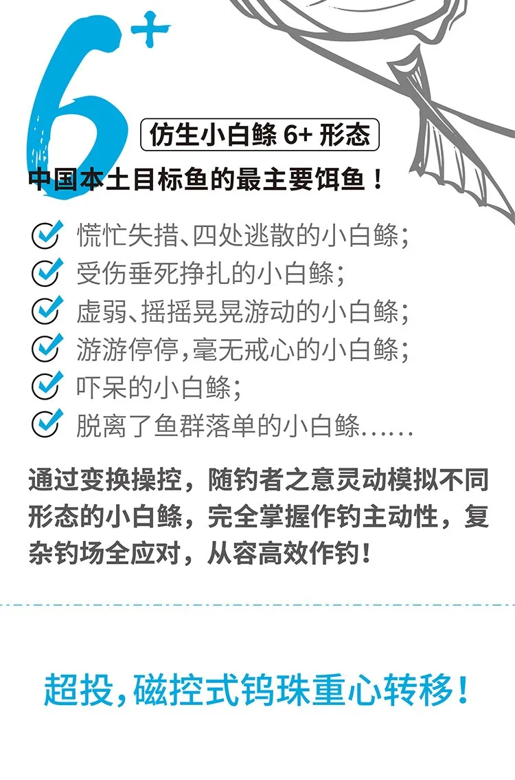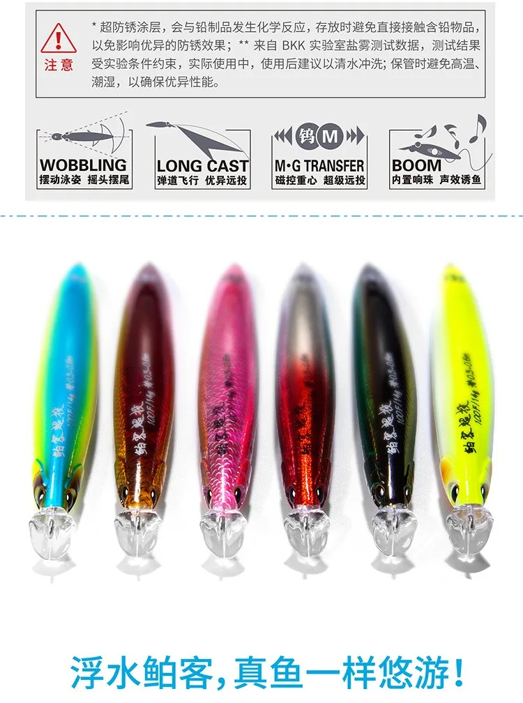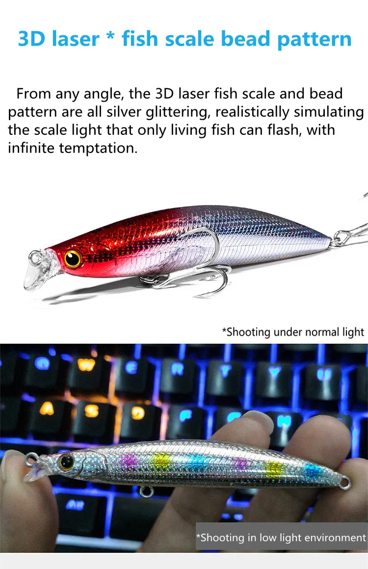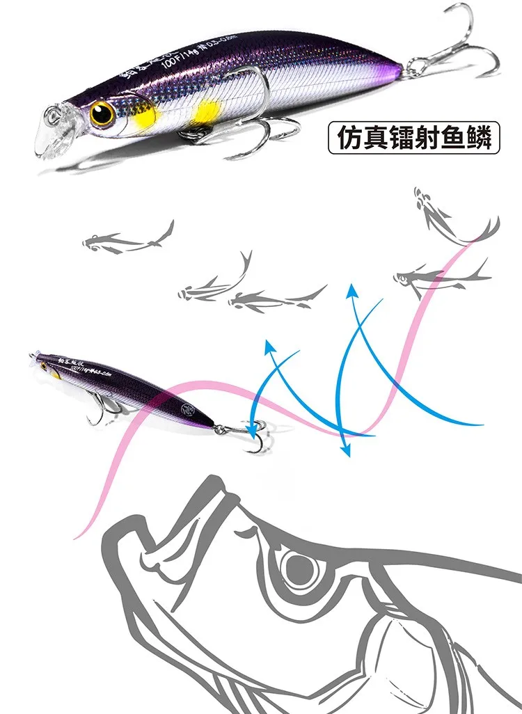 Snorkeling and shallow diving, swimming like a real fish!Ballistic over-projection, magnetron tungsten bead center of gravity transfer system! The sensual bait fish, slow harvesting is the best control! Kill the upper water layer & shallows, with a higher hit rate!