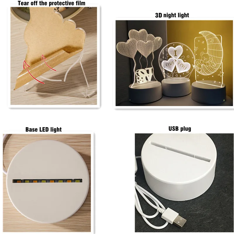 USB светодиодный акриловый 3D ночник, светильник с рождественской елкой, оленем, различные стили, украшения для дома, вечерние лампы на день рождения, подарок