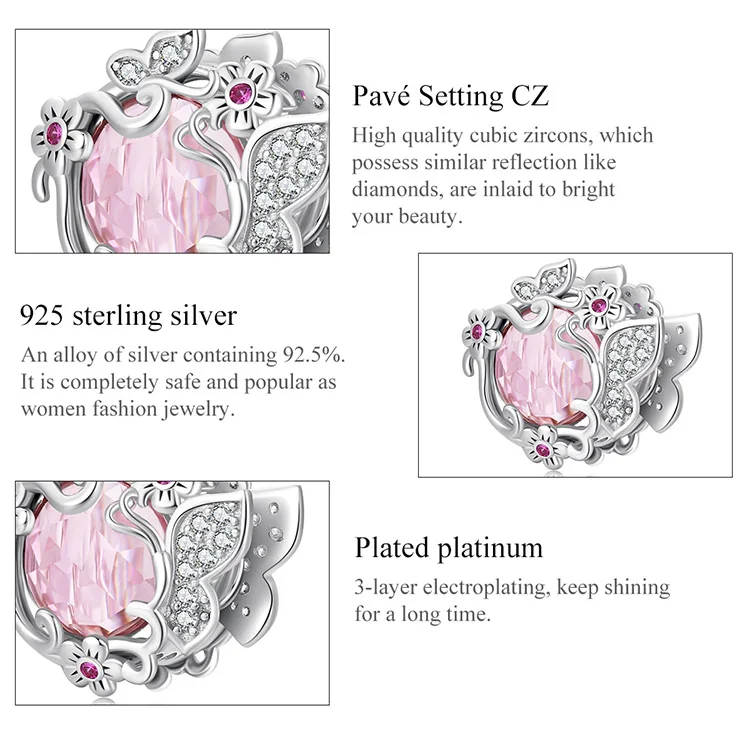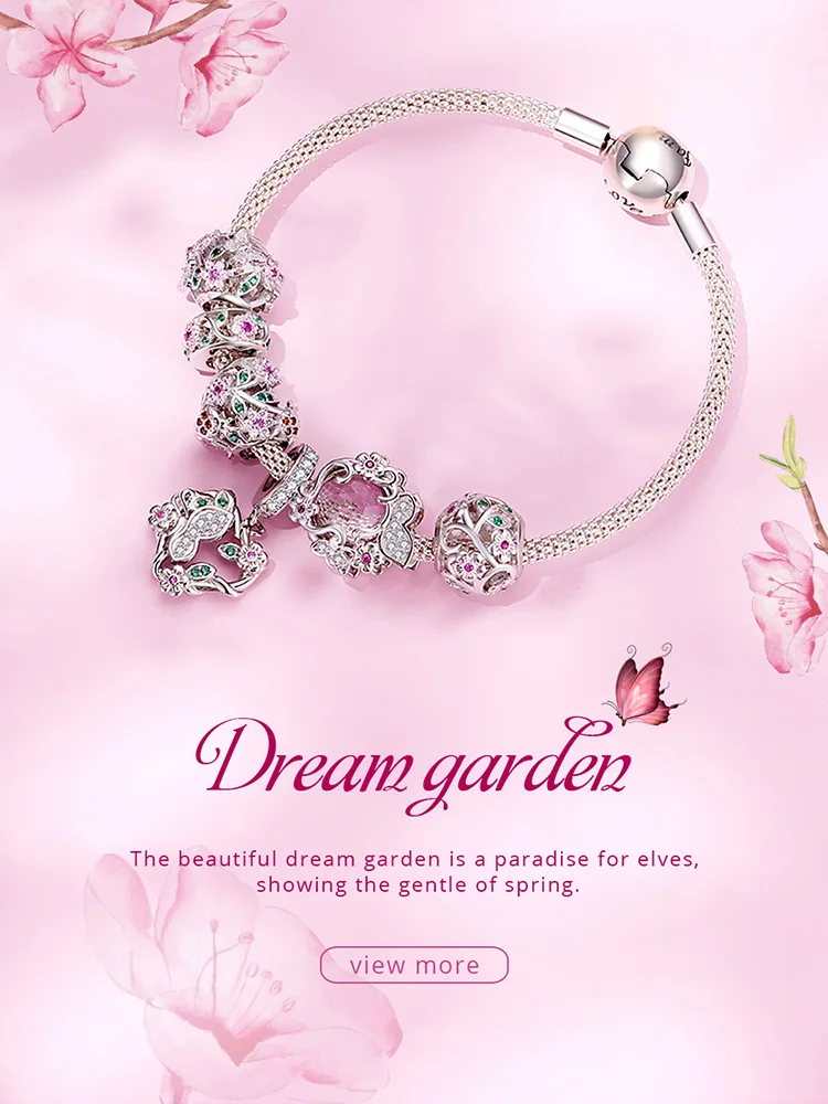 ❤[Описание] Милые рисунки изящных цветов расти произвольно вокруг розовый циркония, привлекая Летающий серебряные бабочки, представление Весенняя мечта сад.