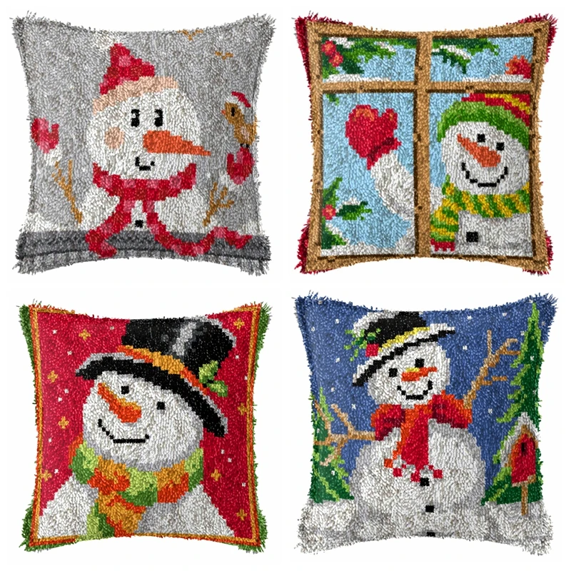Christmas Snowman Latch Hook Cushion Klink Haak Kussen Handwerken Knooppakket Smyrna Pakket Kussen Knooppakket Latch Hook Kit