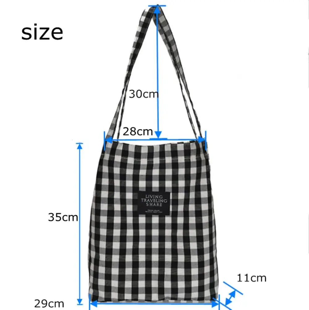 Ins Корейская клетчатая Холщовая Сумка для покупок, модная прочная Женская Студенческая хлопковая Льняная сумка на одно плечо, сумка для покупок