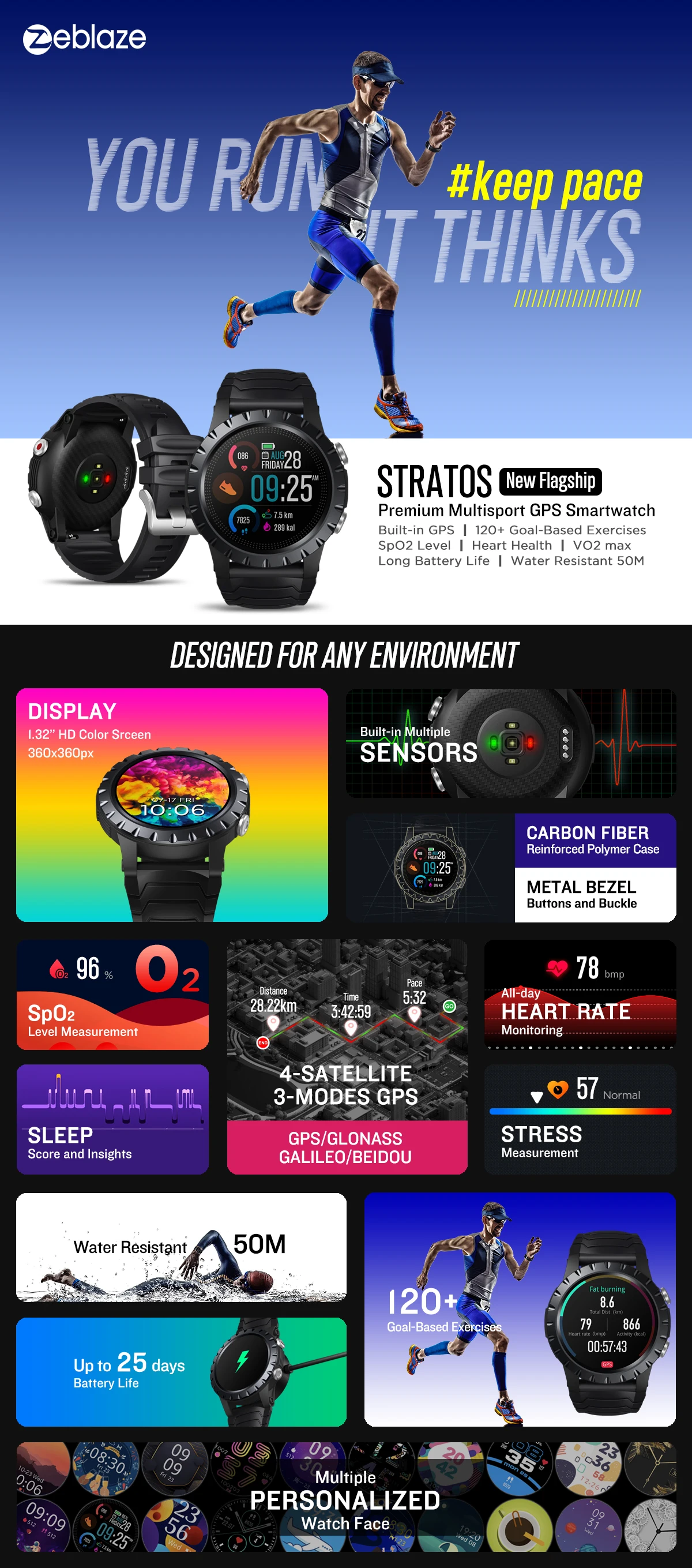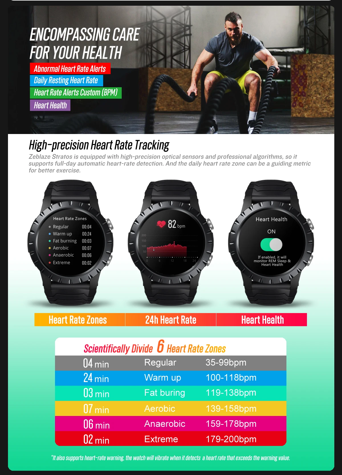 Zeblaze Stratos GPS умные часы Встроенный 4-спутниковая/3-режимы GPS сердце/SpO2/VO2max/стресс монитор сердечного ритма Смарт часы для мужчин IP68 из водонепроницаемого материала