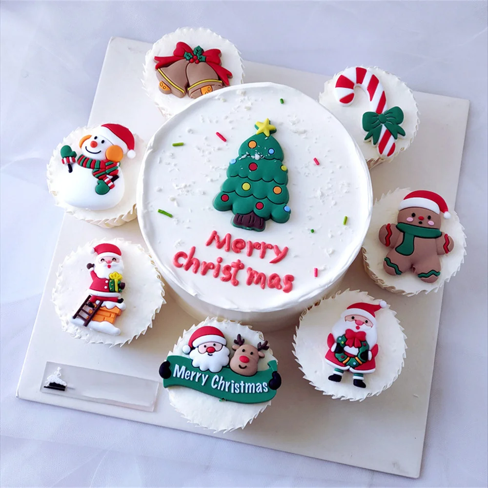 Узор: Рождественская елка, Санта-лось, носки, Подарочная коробка, трость, колокольчик, Санта-Клаус, Пряничный человек, Рождественский венок, снеговик