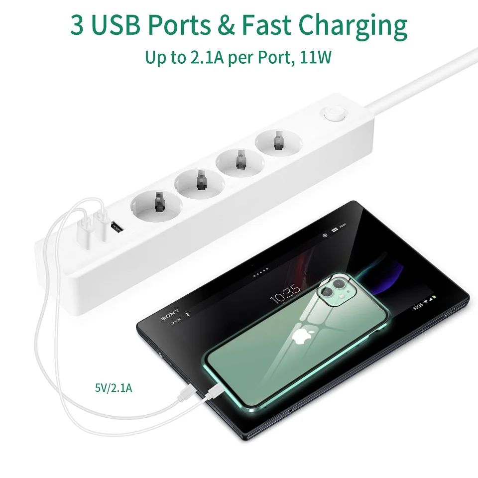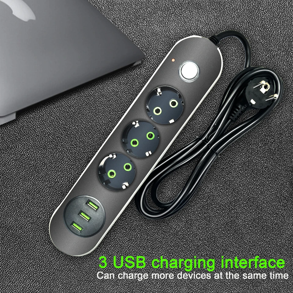 Сетевой фильтр с разъемами питания, сетевой фильтр с разъемами USB 3,4 а для зарядки, многоразовый удлинитель для кабеля 2 м
