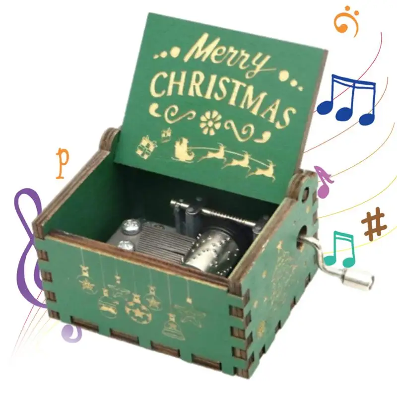 Рождественская деревянная музыкальная шкатулка, деревянная винтажная Выгравированная музыкальная шкатулка, уникальная веселая Рождественская мелодия, новогодние подарки