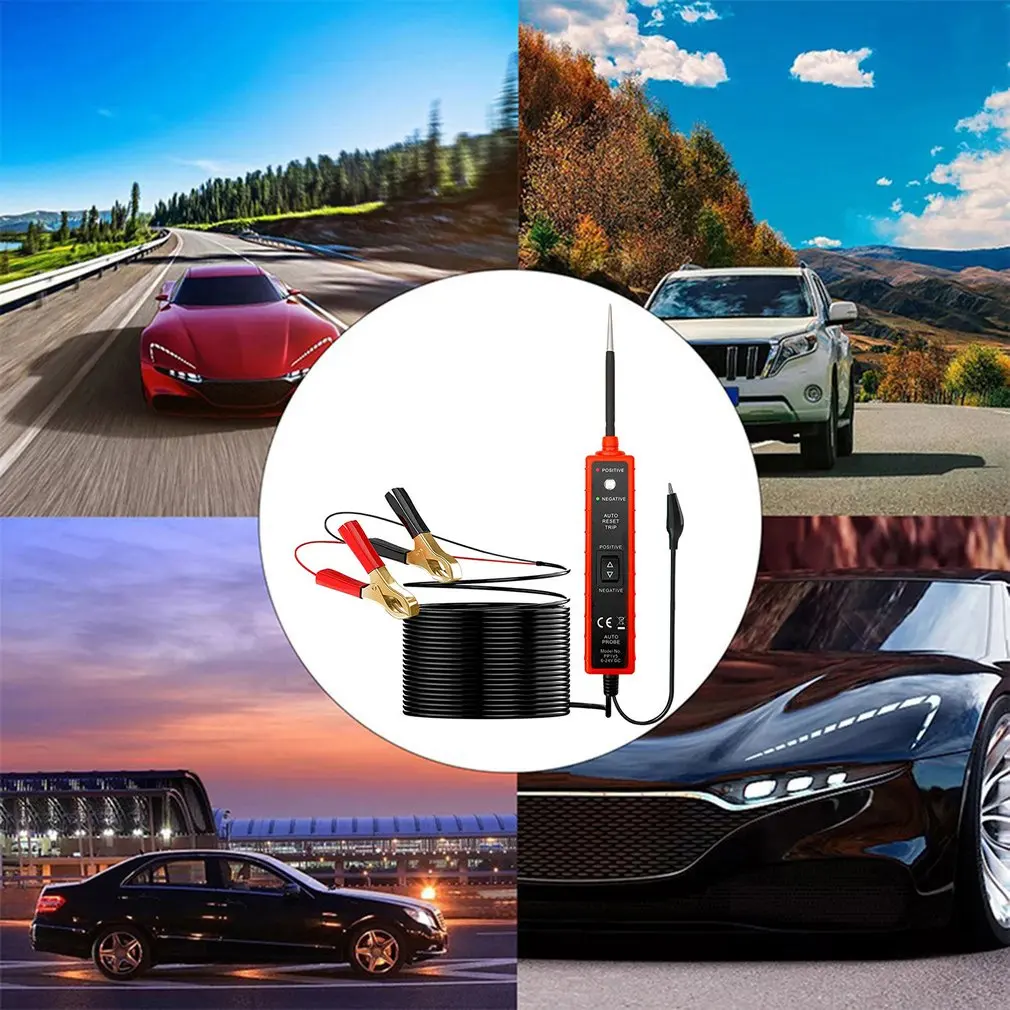Тестер цепи может быть использован для проверки непрерывности, полярности тестового напряжения, проверки света, проверки моторов, отслеживания и определения местоположения коротких замыканий, проверки плохого заземления соединений и т. Д. При использовании разверните кабель этой машины и прижмите красный зажим к положительному электроду автомобильного аккумулятора, И черный зажим к отрицательному электроду автомобильного аккумулятора.