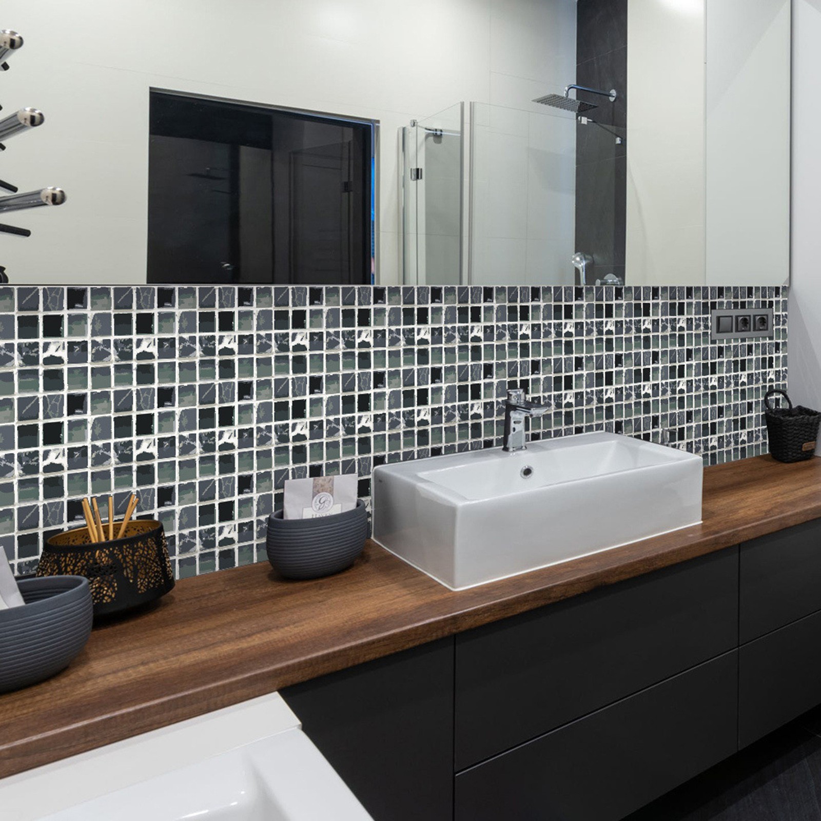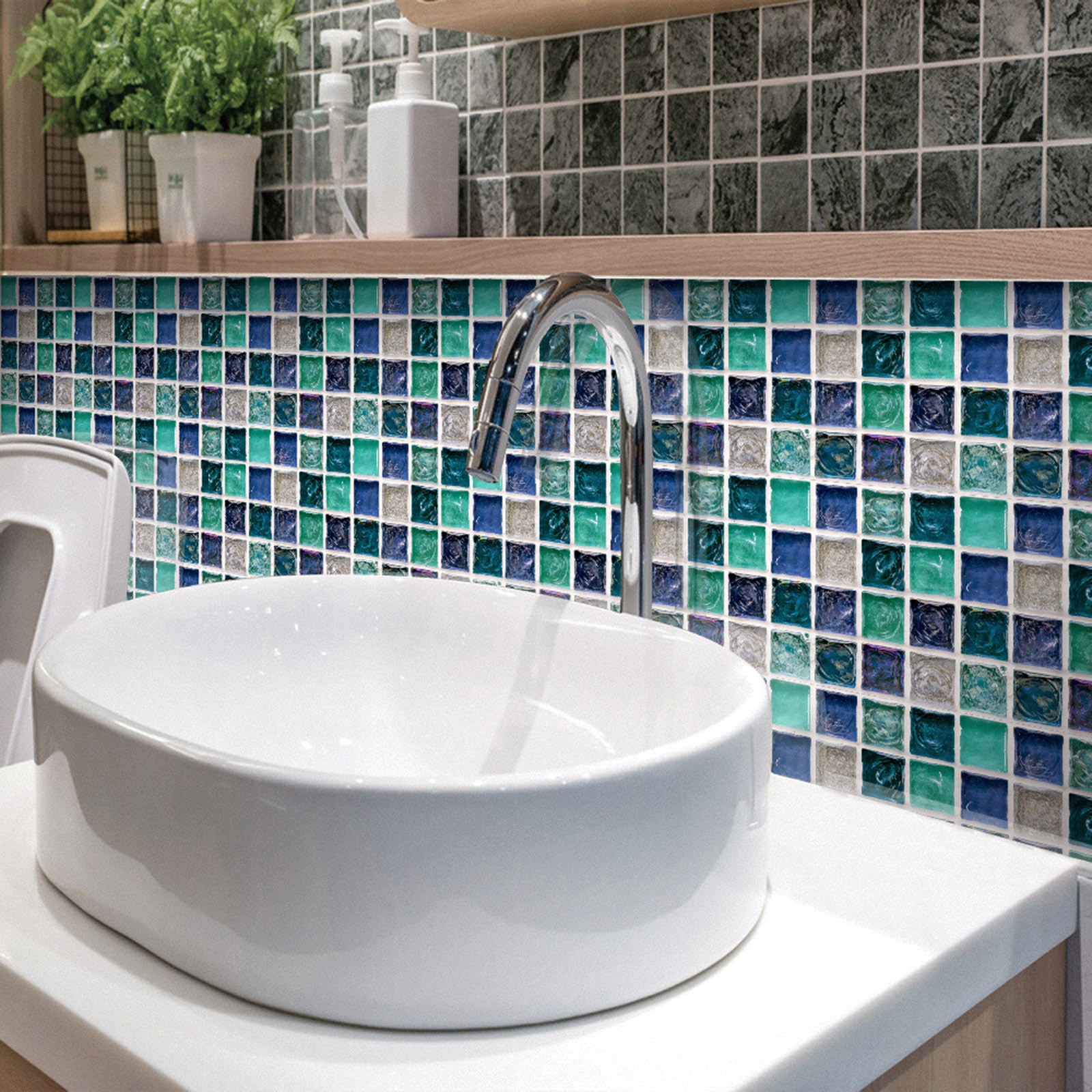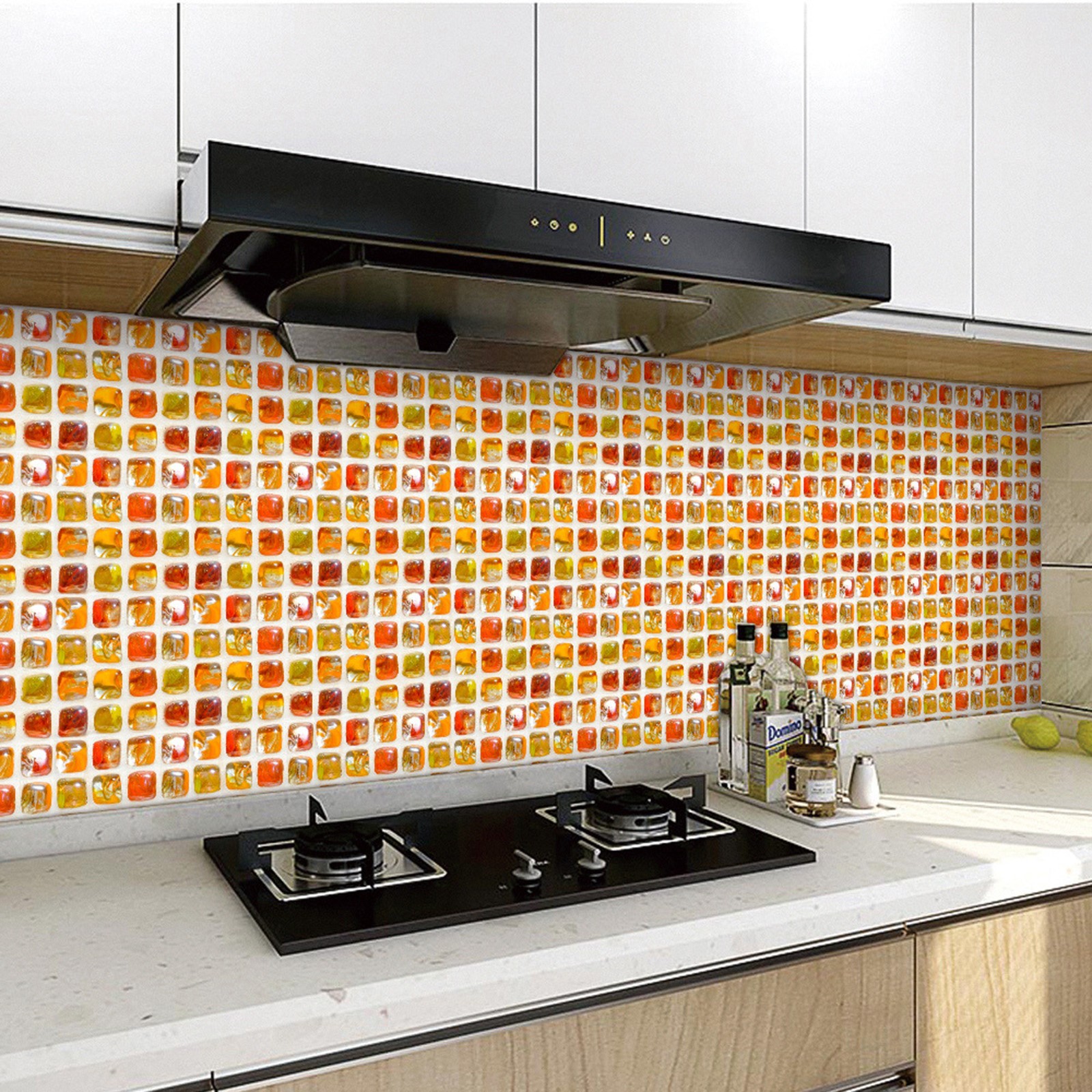 Легко сделать это самостоятельно-приклейте к плитке для разбрызгивания на кухне или ванной, самоклеящаяся, устойчивая адгезия, может быть хорошо Прошита И установлена в соответствии с размером, может быть согнута к углу, без затирки, без клея, без беспорядка, без специальных инструментов, никакого опыта не требуется.