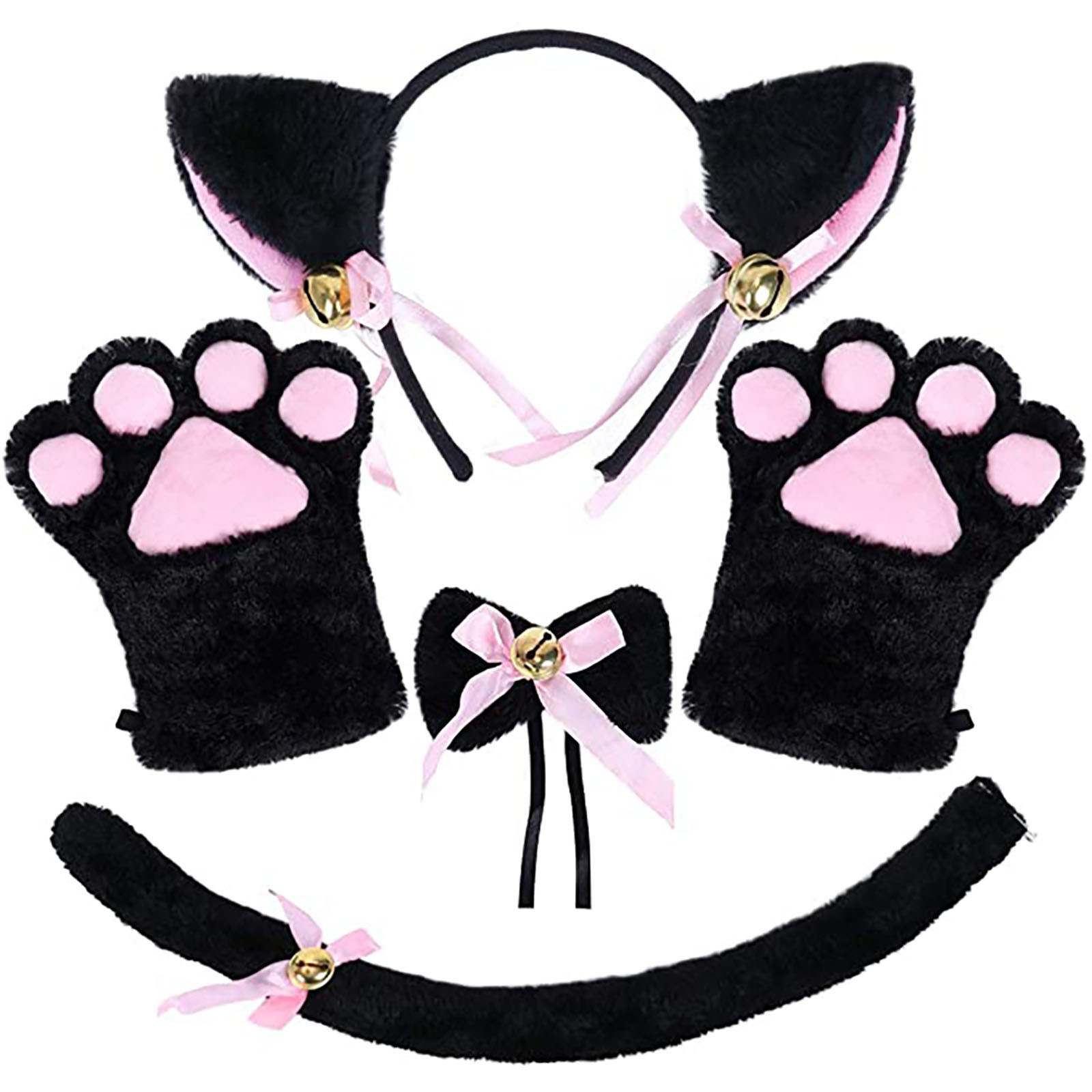 Кошачьи ушки! Enyanko Косплей комплект из 4 предметов кошки перчатки с ушками воротник стиль галстук-бабочка хвост