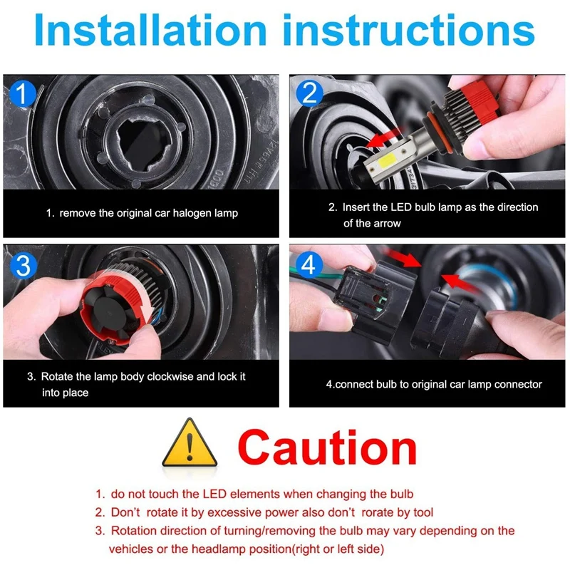 [Простая установка] почти 1:1 мини-дизайн такой же, как галогенная лампа, идеально вписывается в ваш корпус и заводские розетки без каких-либо модификаций и дополнительной проводки, просто подключите и играйте, 10 минут легко установить. Светильник в 5 раз длиннее галогенной лампы, IP65 Водонепроницаемый, отлично работает как ближний свет, дальний свет и противотуманный светильник.