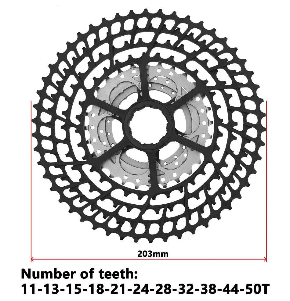 Teeth number: 11T-13T-15T-18T-21T-24T-28T-32T-38T-44T-50T