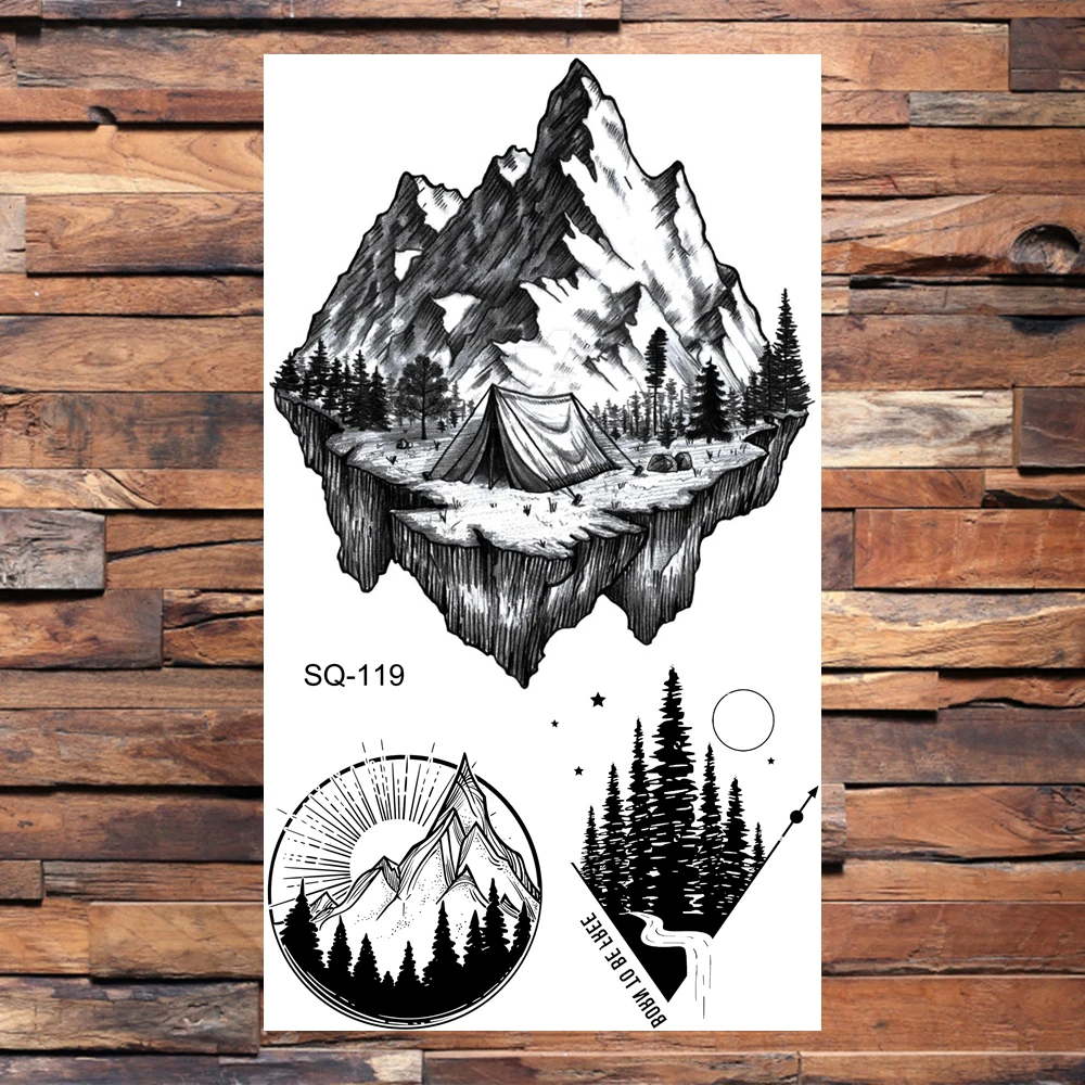 Кит лес Временные татуировки для взрослых мужчин реалистичные горы, реки, волны и звезды Поддельные татуировки наклейки на тело руки