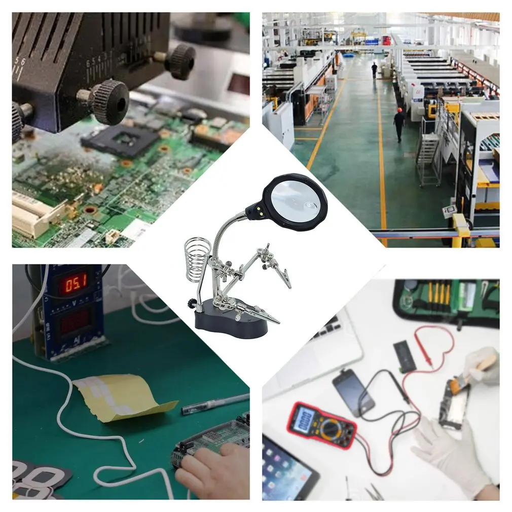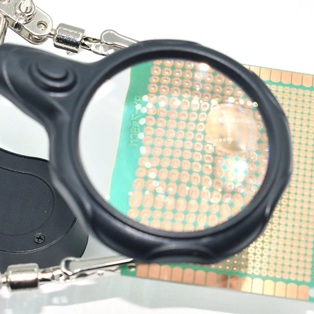 Это увеличительное стекло имеет светодиодный светильник, который может использоваться в качестве небольшой настольной лампы, стабильной структуры, кронштейна из нержавеющей стали, не легко деформируется, является хорошим продуктом