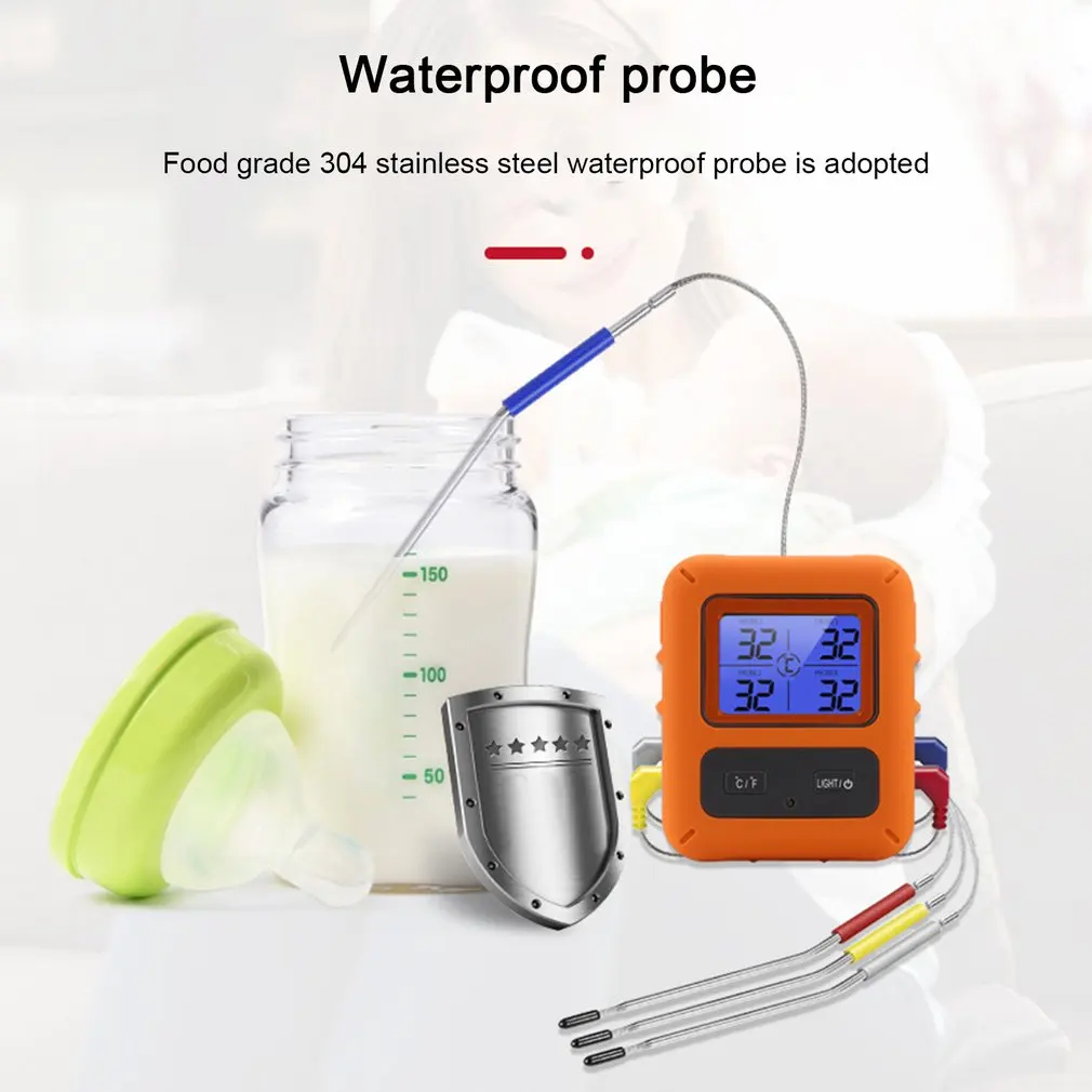 4. Он имеет положительную функцию синхронизации/обратного отсчета: максимальный диапазон времени: 9H59M59S, барбекю и ежедневное приготовление пищи можно использовать функцию синхронизации, зонд с водонепроницаемой оценкой IPX7, значительно улучшает жизнь зонда, может быть открыт, чтобы стоять на столе или привлекают магниты, И его также можно зажать в карманах брюк и т. Д.