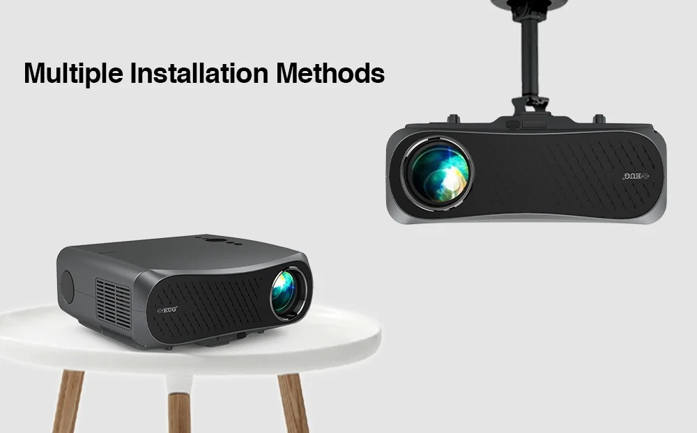 The projector has many installation methods,you can install the projector on the ceiling,you can place it on the desk.The projector can project on large screen,the feeling likes in the home theater.