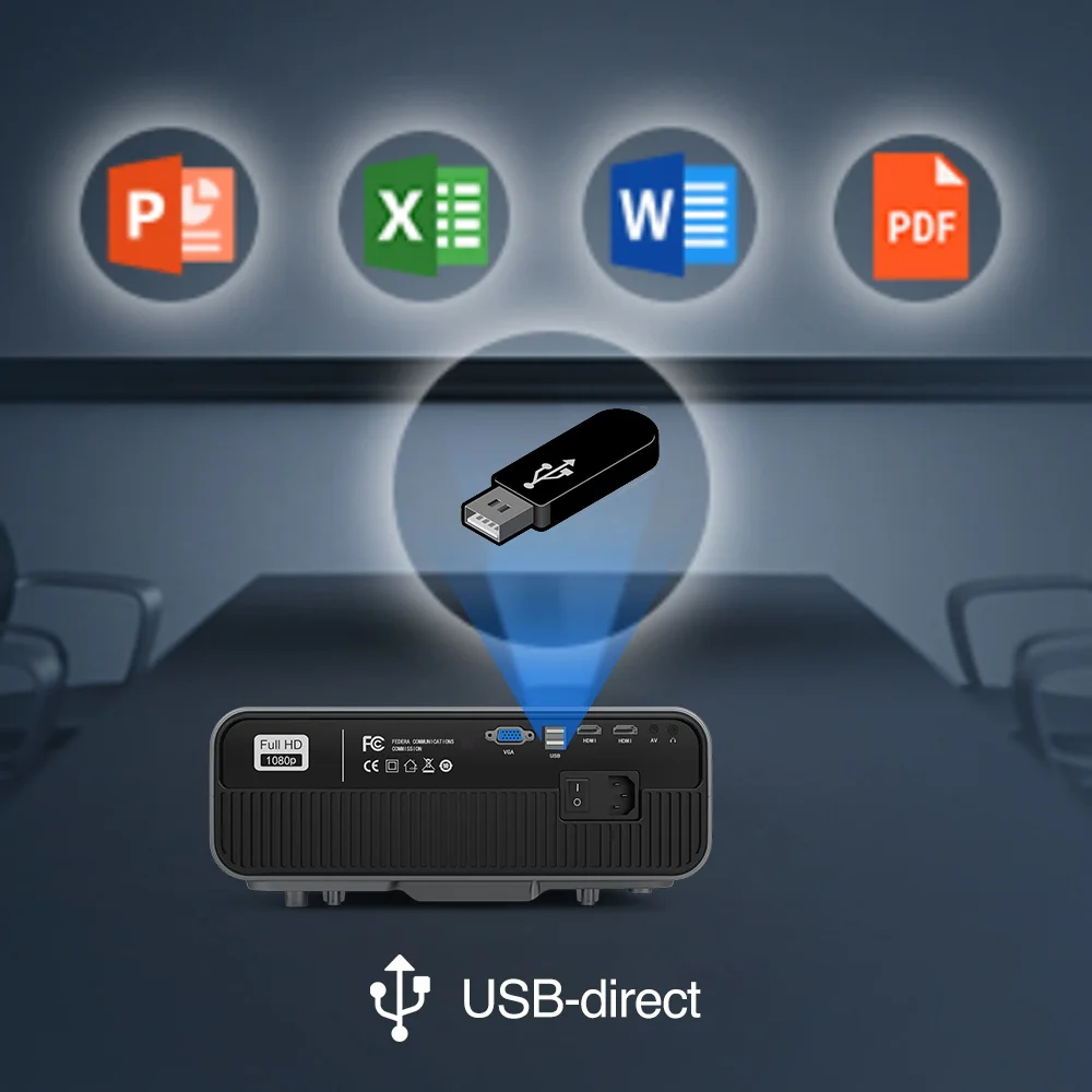 The projector can be used to browse many files,ppt,excel,word,pdf.You can insert the usb into the projector,you can watch many files.