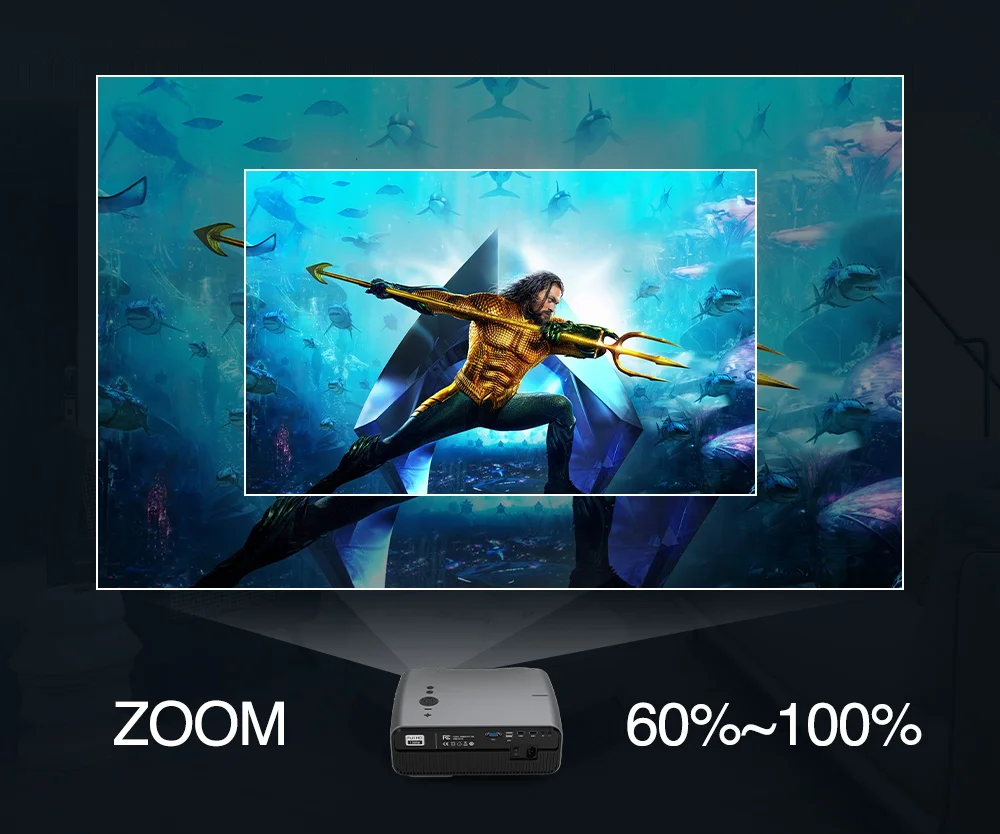 The projector has digital zoom function,you can adjust the picture from 60% to 100%.The projector can keep high picture quality when it is adjusted.