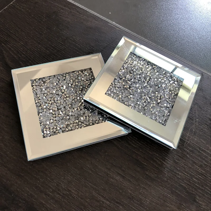 Эти изысканные Стеклянные горки имеют зеркальный дизайн. Края скошены и отполированы. Площадь посередине-прозрачное стекло, инкрустированное бриллиантами. Сочетание зеркального преломления и алмазного блеска является привлекательным украшением.