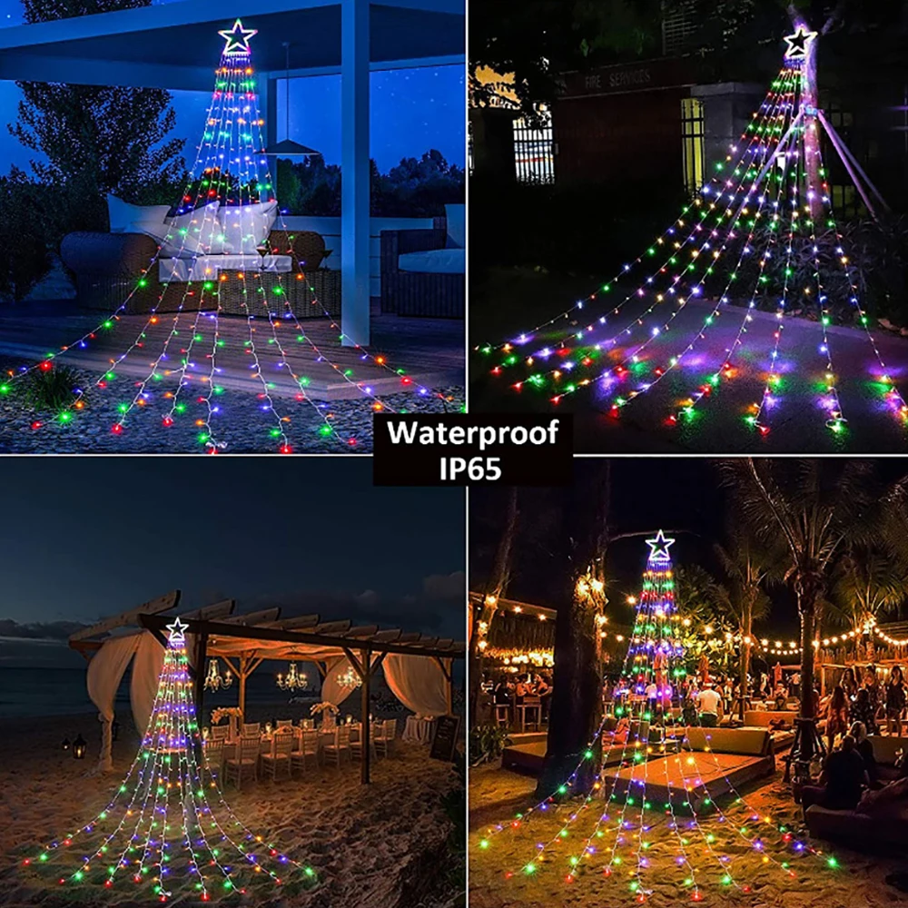 IP65 Водонепроницаемый водопад Рождественские Звездные огни очень подходят для внутреннего и наружного декора. Прочная конструкция делает ее прочной и долговечной, и ее нелегко сломать и перегревать после длительного использования. Они достаточно прочные, чтобы обеспечить высокое качество освещения.