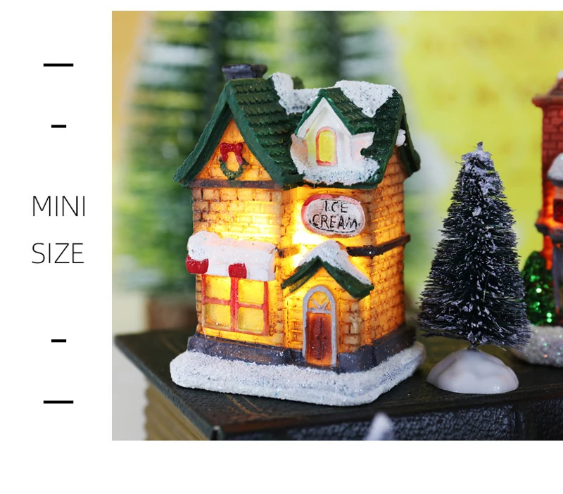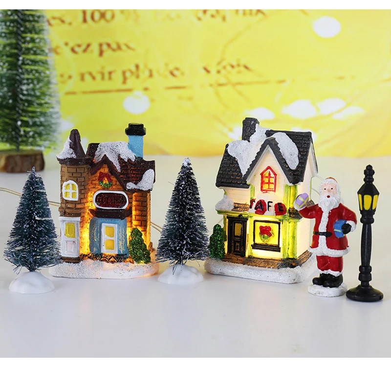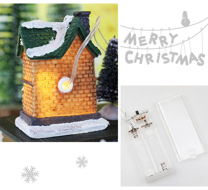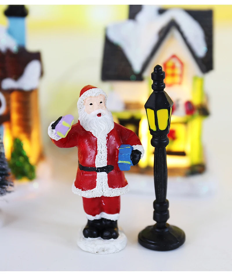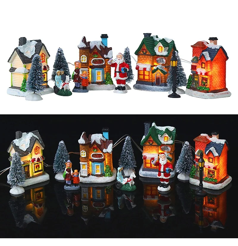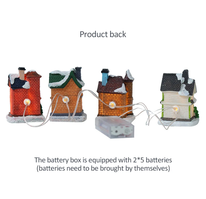 4* Small Rooms, 1 Pair* Christmas Mother and Daughter, 1* Christmas Couple, 1* Santa, 4*Christmas trees, 1*Street Light, 1*Battery Box (4 Lamp Holders)