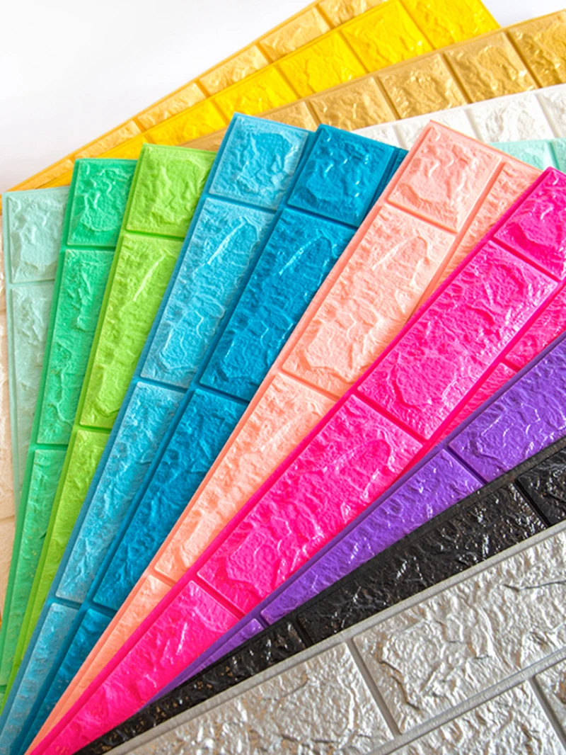 C. Многоцветные варианты: Эти 3D наклейки для обоев из пенопласта поставляются с различными цветами, которые можно смешивать и сочетать с эстетическим внешним видом и дизайном. 3D кирпичные обои, которые имеют белый, розовый, синий, серый, зеленый, черный, коричневый и другие цвета для вас, чтобы выбрать свой любимый цвет.