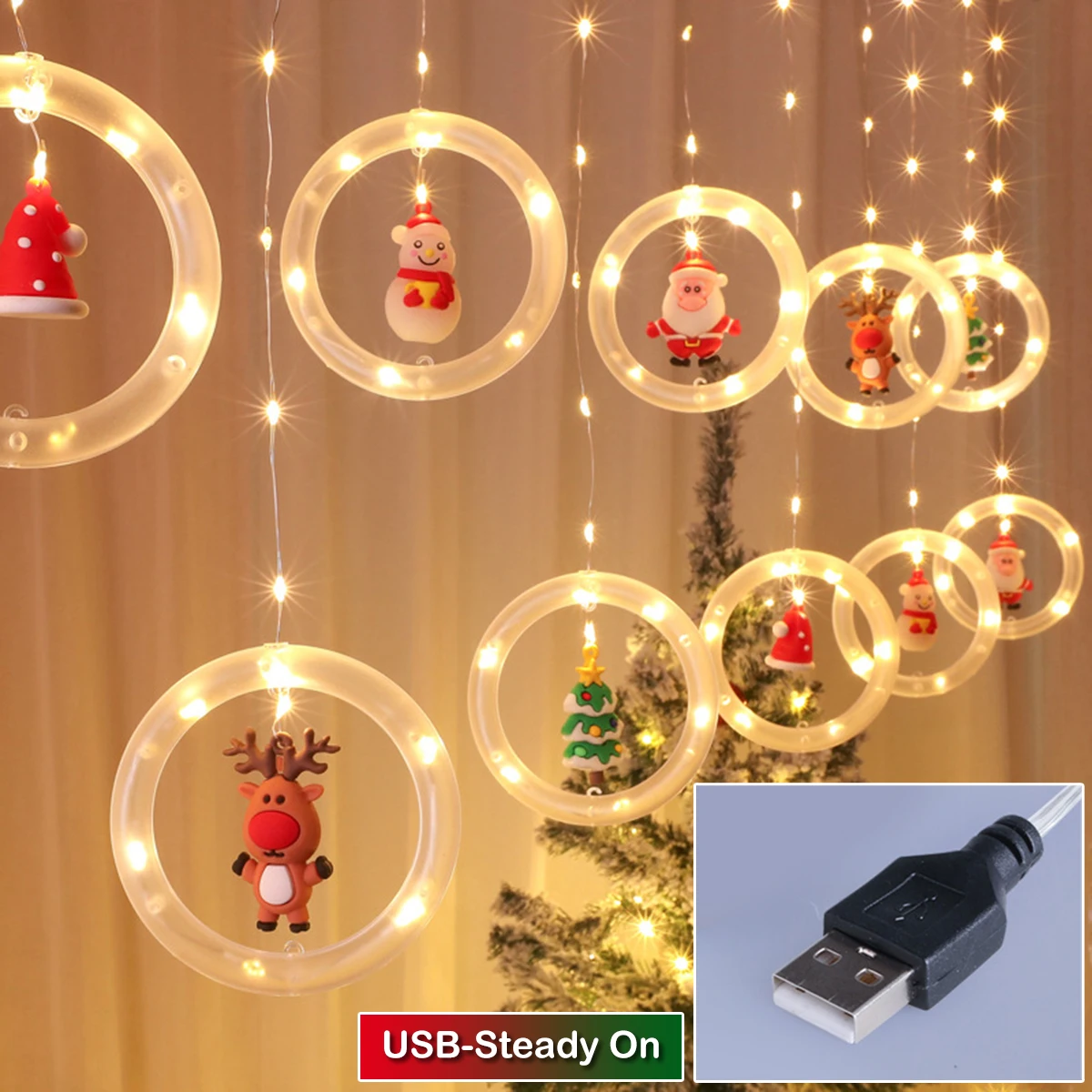 Рождественский светодиодный светильник для занавесок, украшение, подвесной светильник с мультипликационным принтом, сделай сам, USB Батарея, окно, вечерние, магазин, ресторан, настенная гирлянда, Декор