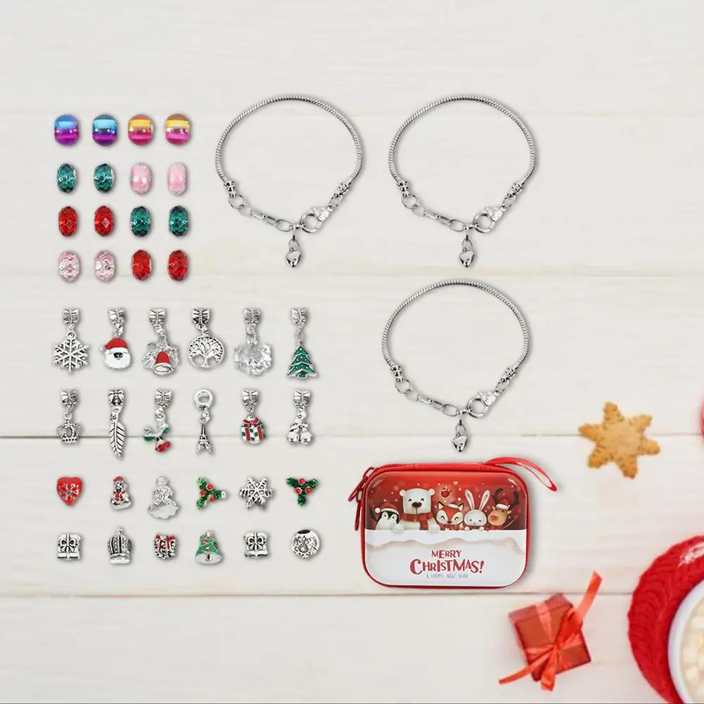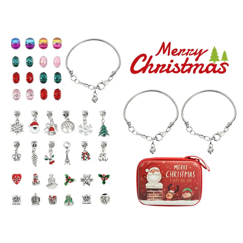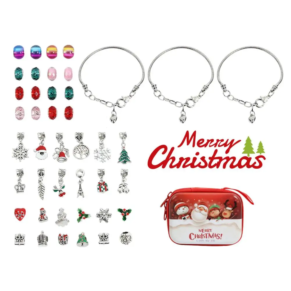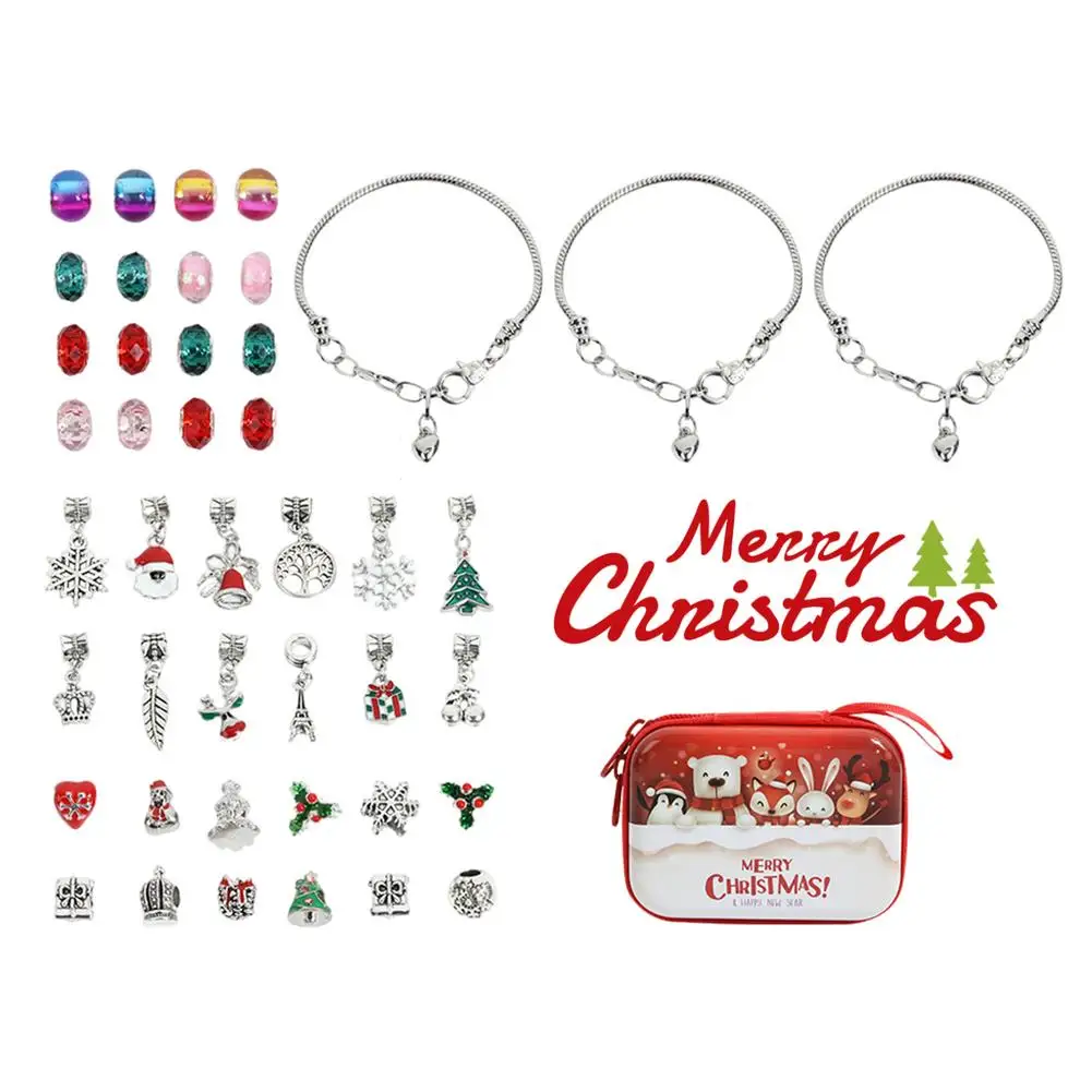 This bracelet set includes 16 Colorful Glass Beads, 12 Alloy Beads, 12 Christmas-themed Pendants, and 3 Silver Bracelets. It is the perfect gift for girls on Christmas, birthday or other special days. The DIY bracelet set can help to enhance children’s hand-on ability, imagination and innovation.