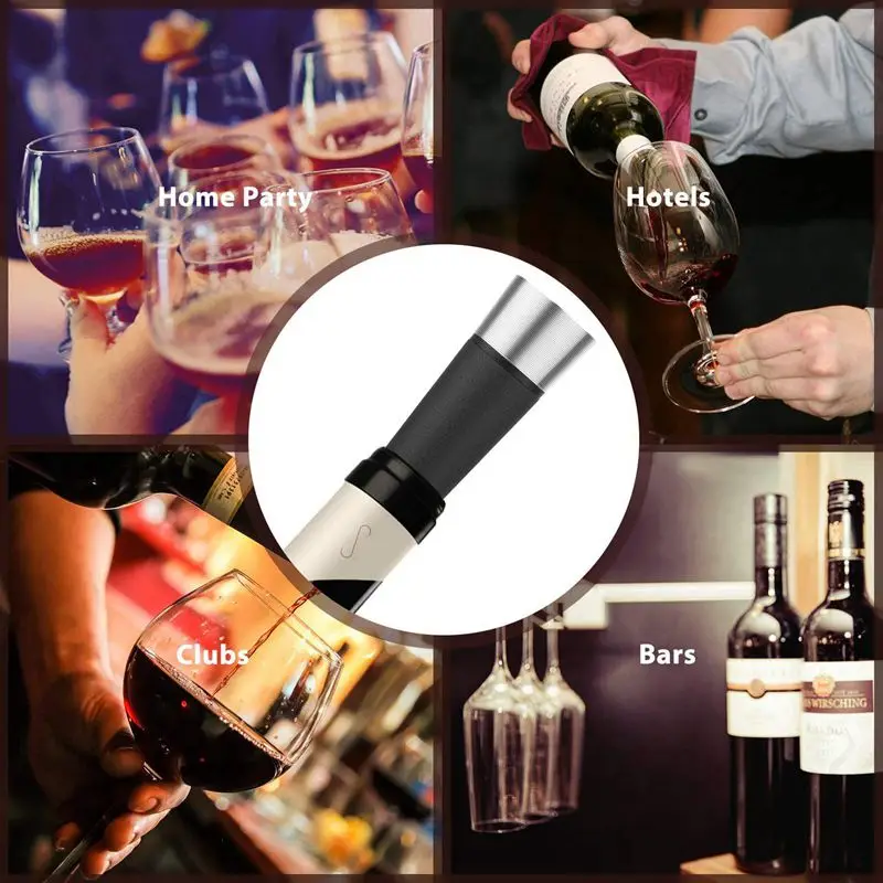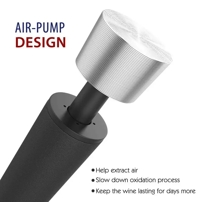 Герметичное уплотнение сохраняет вино свежим, шампанское газированное и другие напитки, замедляет процесс окисления и сохраняет ваше вино. И функция вакуумного насоса для сохранения свежести вина около 7 дней.